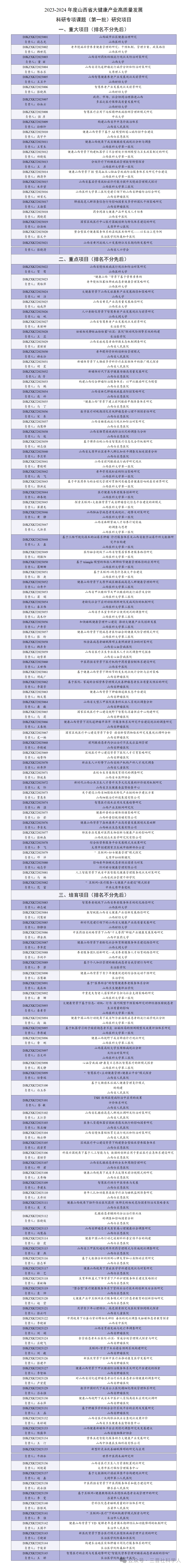 山西省大健康产业高质量发展科研专项课题(第一批)立项通知
