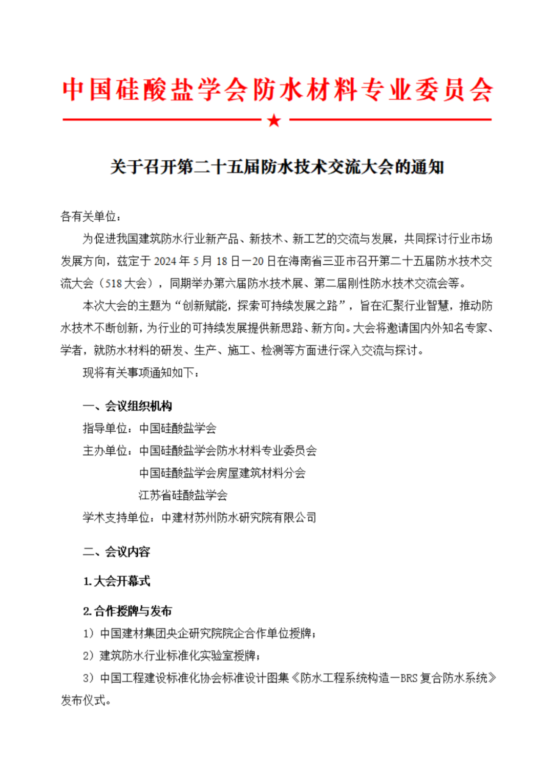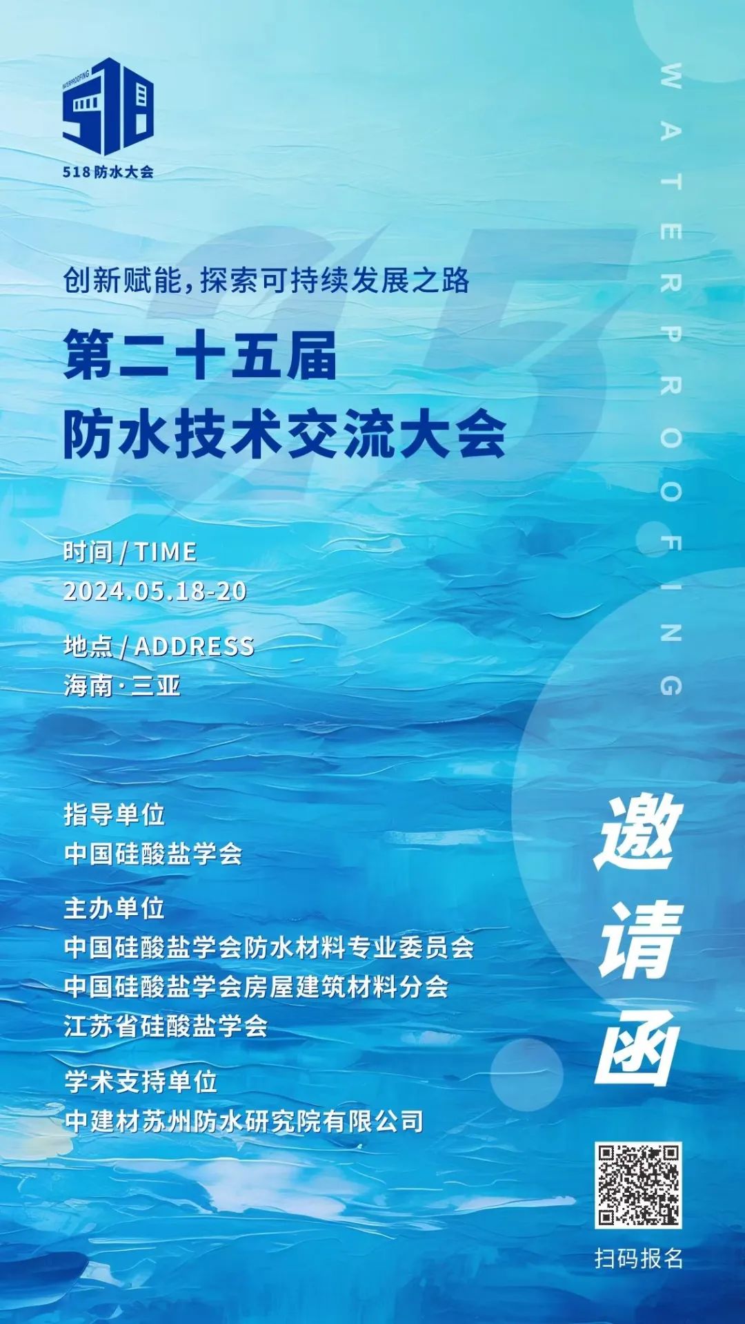 【行业动态】由中国硅酸盐学会防水材料专业委员会牵头主办的第二十五届防水技术交流大会5月18-20日在海南三亚召开!