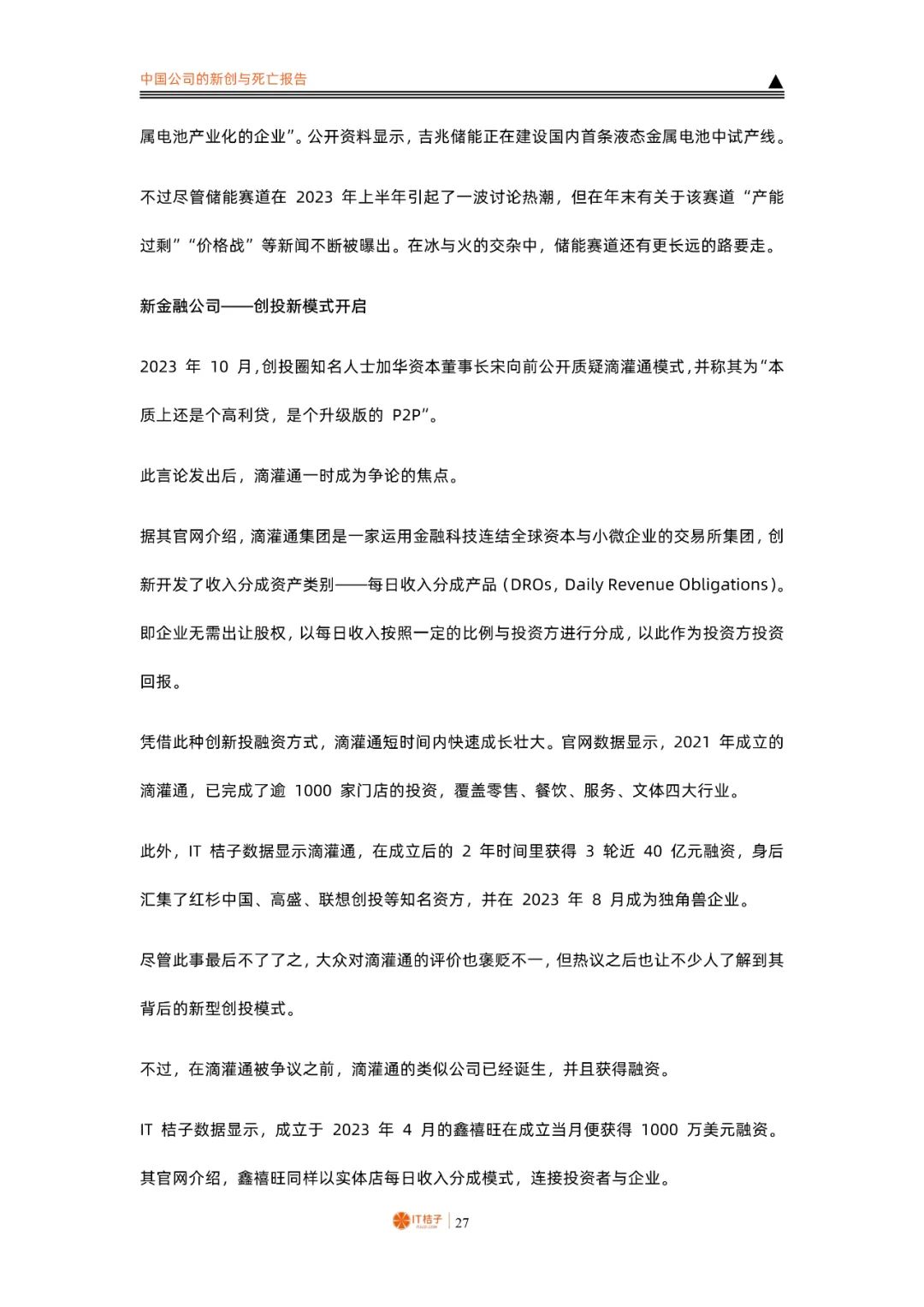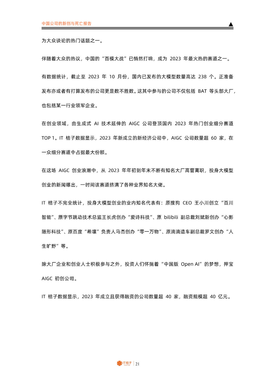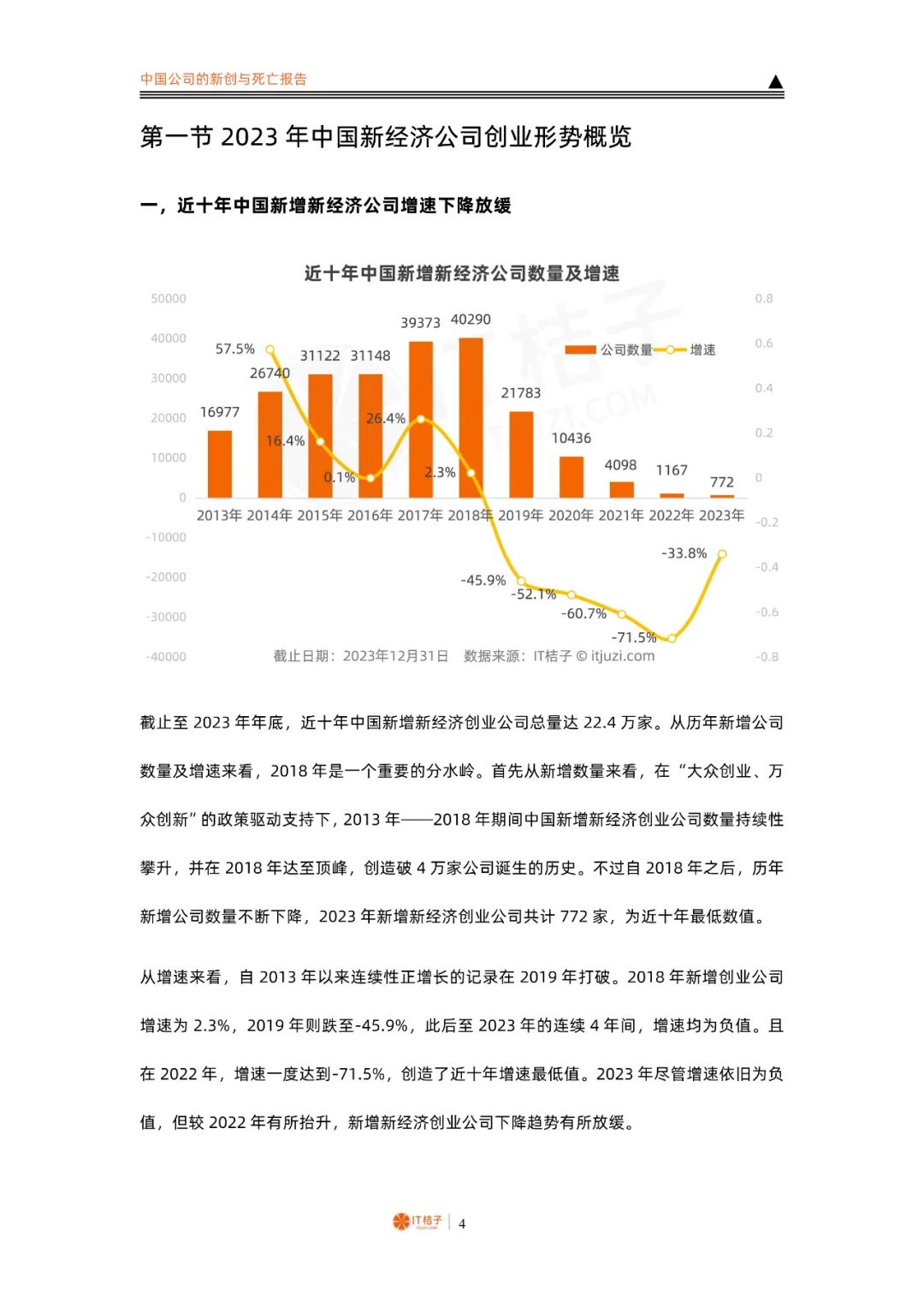 2024中国公司的新创与死亡报告节选如下,报告全文请到TOP行业报告小程序查阅下载。