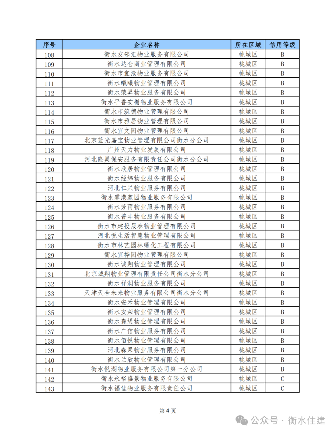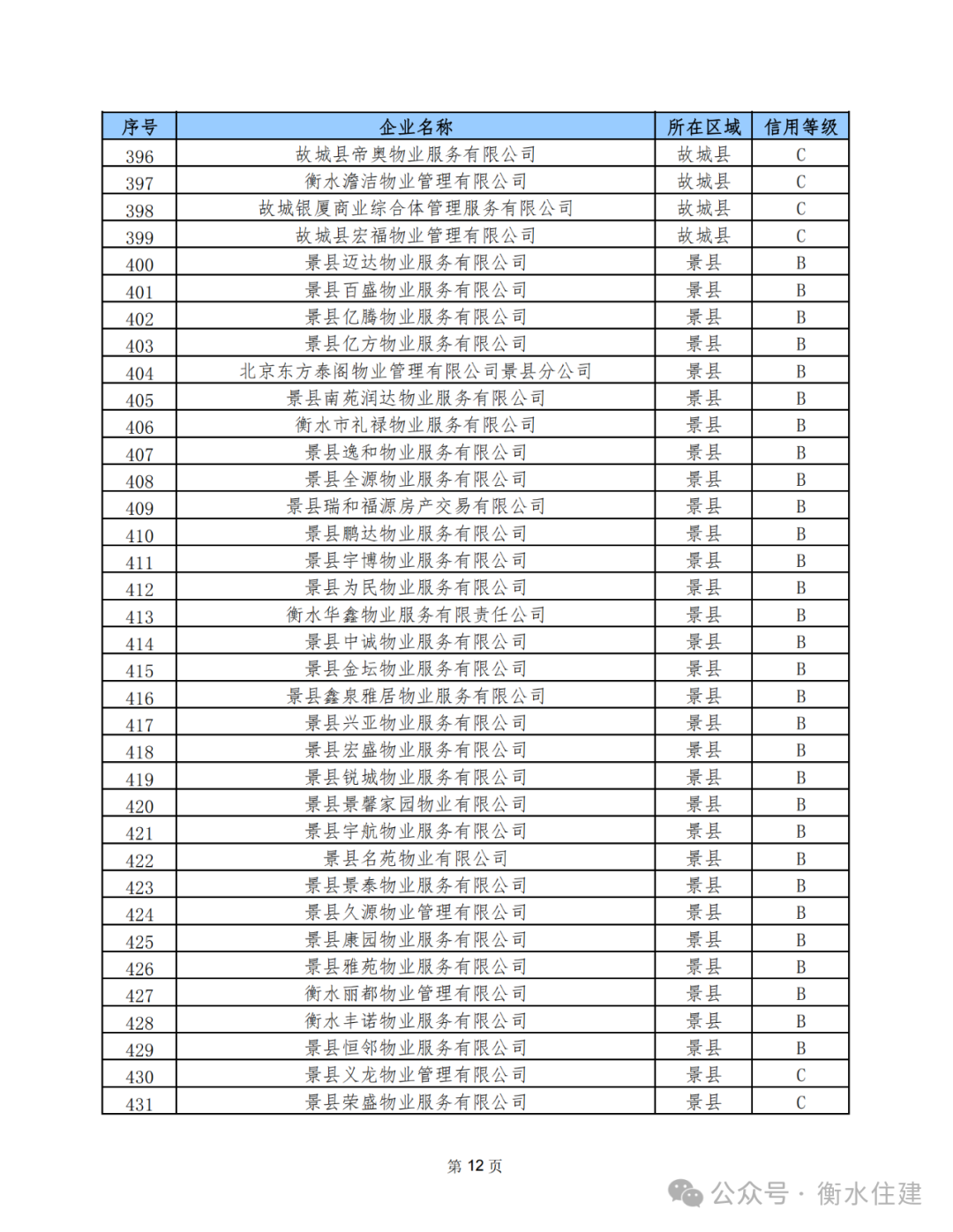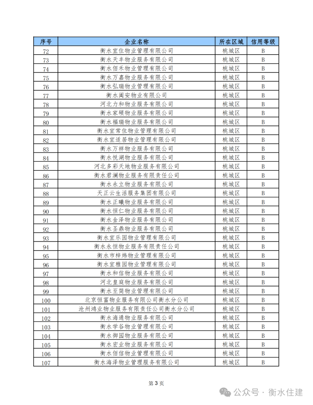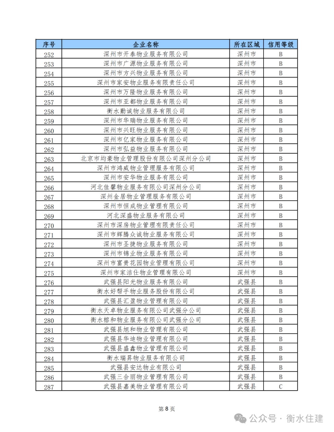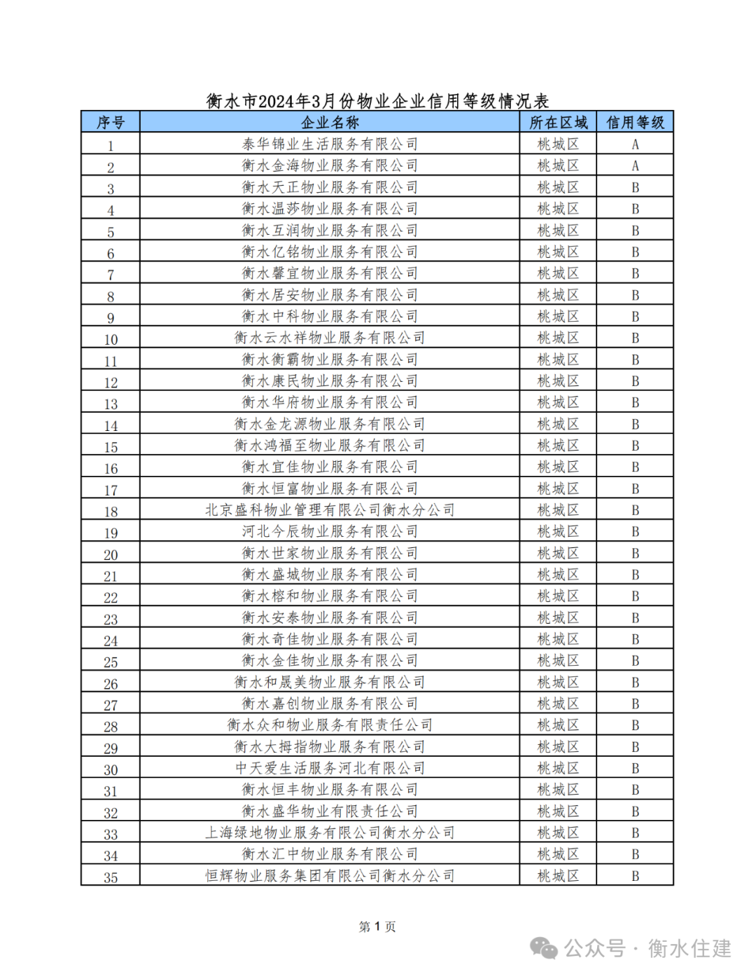 为进一步规范我市物业服务企业经营行为,加强物业行业管理,促进我市物业行业健康发展,近期,市住建局依据《河北省物业服务企业信用信息管理办法》和《衡水市物业服务企业信用档案与评级管理办法》的相关规定,完成了全市3月份物业服务企业信用等级评定工作。