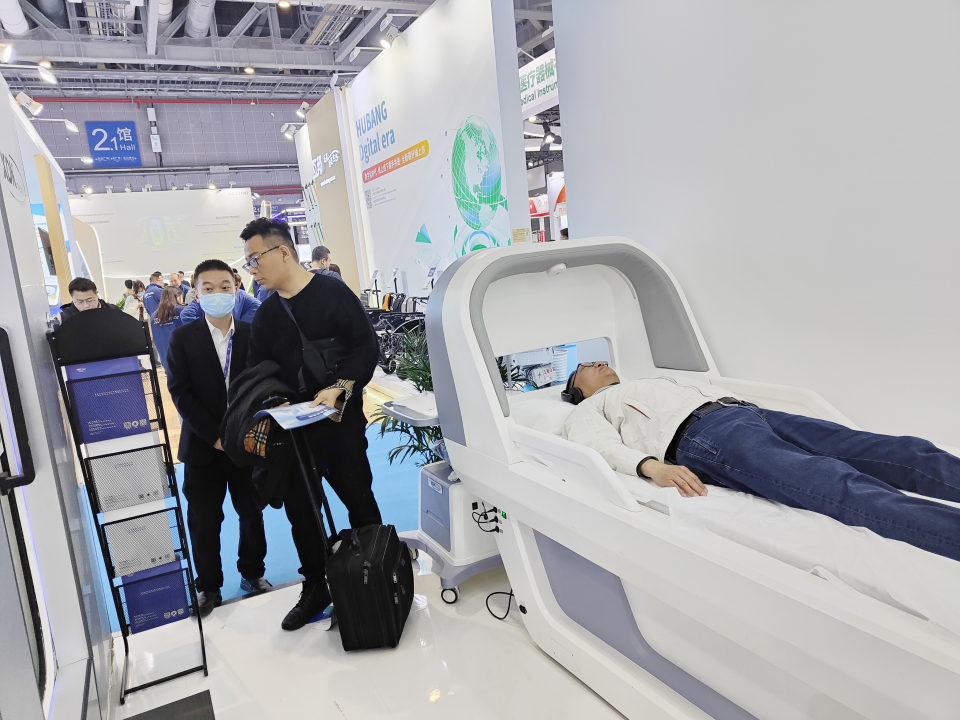 本届展会,希迪克首次采用双层展台的搭建形式,展台布局焕然一新,结构布局更加合理。一层展台为数字睡眠医学中心展示区,展出旋磁治疗系统、睡眠综合治疗系统、磁刺激仪、失眠治疗仪、CBT-I、微高压氧舱等多款先进诊疗设备和数字化睡眠管理系统,展台人气持续升温,吸引了众多观众驻足咨询。