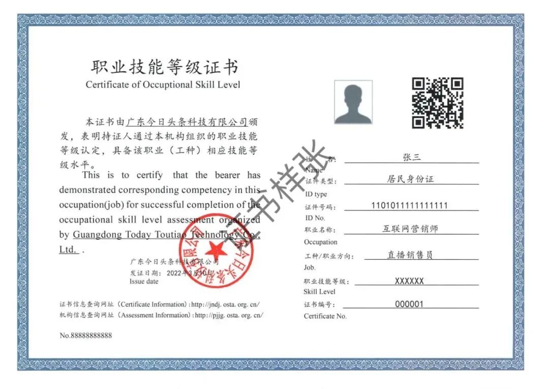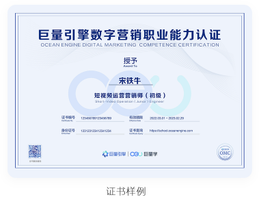 一试双证即为考生一次认定考核通过,可获得企业认可的巨量认证(OMC)证书及政府认可的互联网营销师职业技能等级证书,并依据广东政府人才政策获得相应等级的补贴,双份证书双重价值。