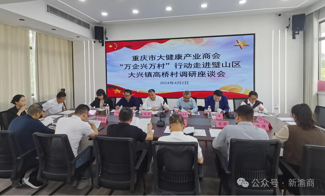 4月2日,重庆市大健康产业商会组织20余家会员企业到璧山区大兴镇高桥村开展“万企兴万村”行动村(商会)帮扶共建活动。璧山区工商联、大兴镇相关负责人参加活动。