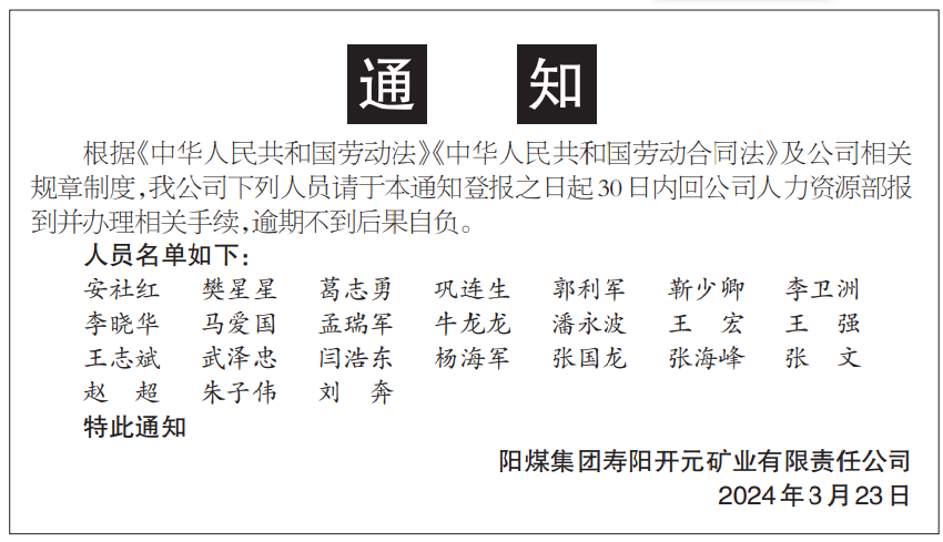 阳煤集团开元矿业公司 通知