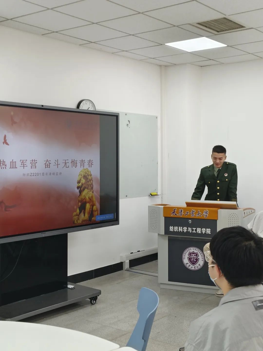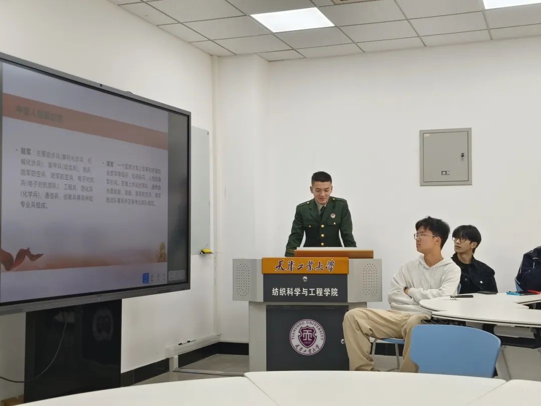 “没有军事就没有外交,没有外交就会挨打。”退伍军人李振南同学作为青年典型以“投身热血军营,奋斗无悔青春”为题,为我们分享了军人为维护国家安全作出的重要贡献。他介绍了我国的国防力量构成,科普解放军现役部队和武警部队的区别:解放军现役部队是对外保卫国家安全,维护国家领土的完整和统一;武警部队对内承担着维护国家社会稳定的任务。李振南同学展现出的军人风貌令同学们向往和钦佩。
