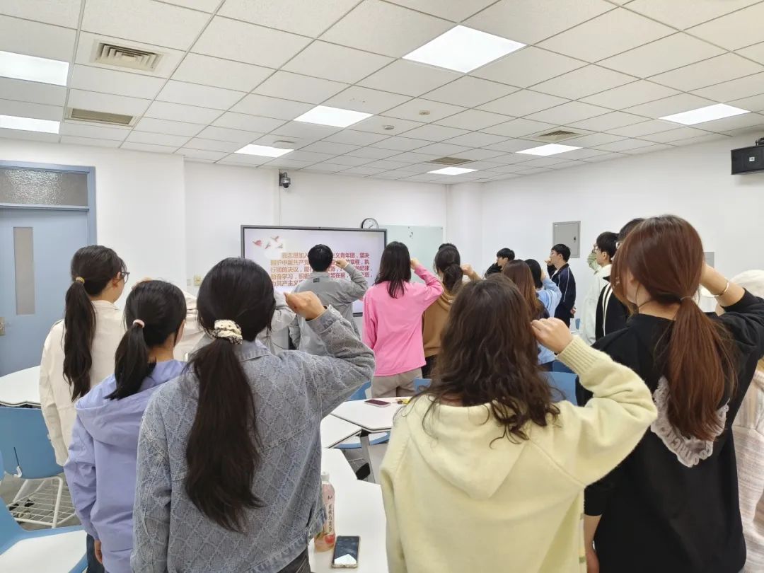 “我们生活在一个和平的时代,但这并不意味着国家安全就可以被忽视。相反,正是因为有了强大的国家安全保障,我们才能够安心学习、工作和生活。”支部团员们有感而发,结合亲身经历进行讨论。三位团员小组代表分别从“政治安全、文化安全、军事安全”三个角度说明了坚持“总体国家安全观”的重要意义。最后团支书带领全体同学重温入团誓词,铿锵有力的誓词回荡在现场每一位同学的心中。
