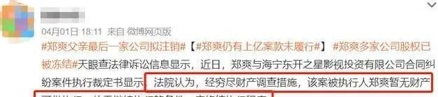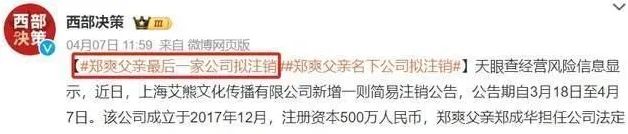 郑爽所属的父公司面临注销的情况,这也让她的财务问题变得更加复杂。
