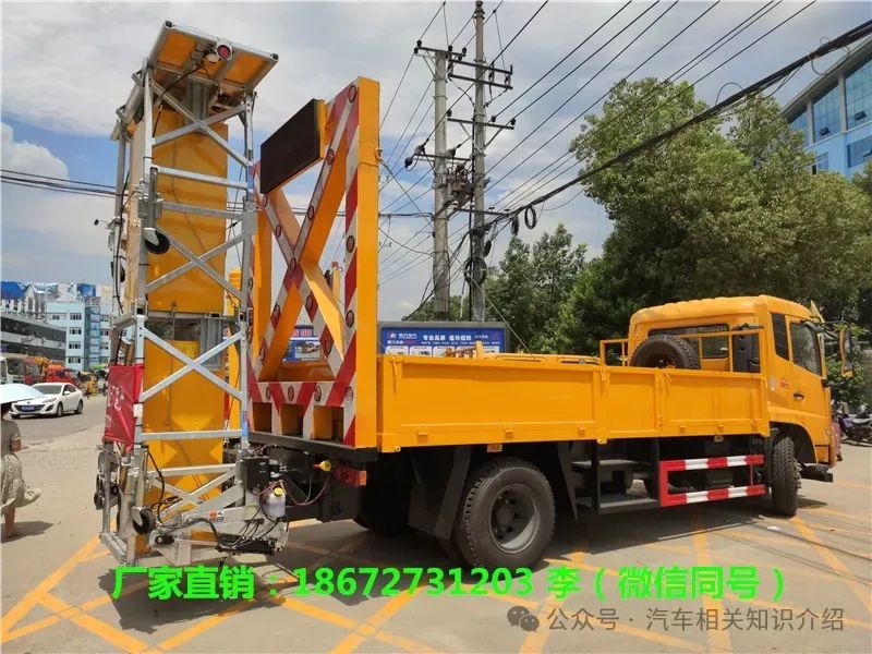 上装配置: 货箱,采用Q235国标边3mm底板花纹板3mm厚,箱体后部防撞缓冲模块采用国内知名品牌CANSINGA-TMA 100K型号,高性能液压系统,可实现快速举升和落下操作,方便设备运输转场,配有10个定制警示灯,LED警示显示屏。采用轻体铝制吸能包可根据碰撞损伤程度单独更换。高性能液压系统,一键启动功能,举升和降落防撞装置未完全到位时会自动报警提醒。可承受2吨的车辆时速100公里/小时撞击直接产生的能量。在承受低速(6mph或10km/h)碰撞时而不需要更换部件,降低了使用单位的使用成本。