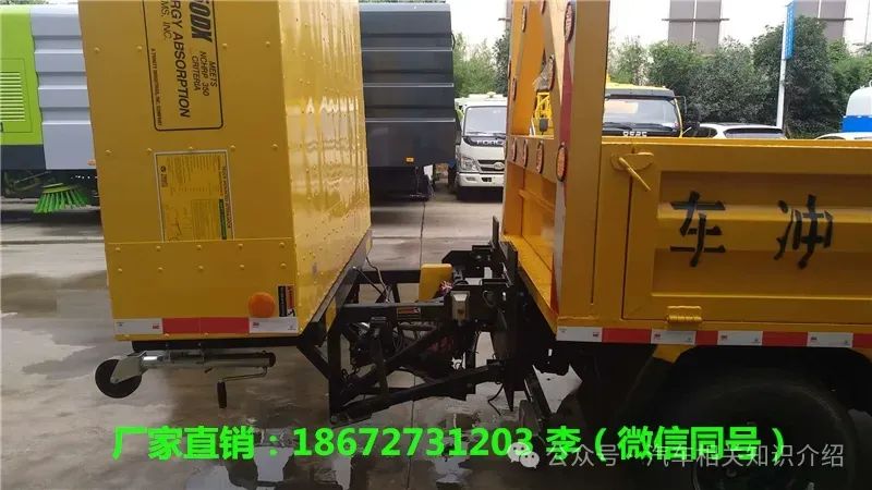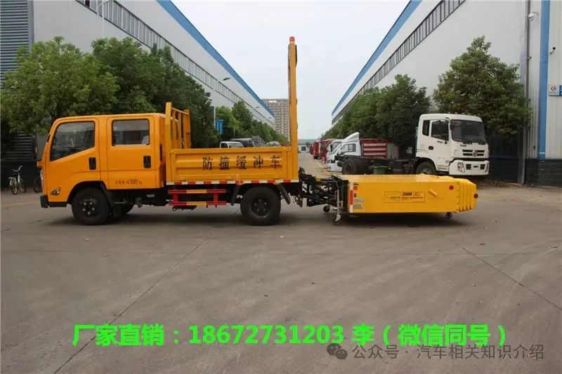 道路养护工人常常受到未封闭交通道路上正在行驶车辆的追尾撞击。特别是夜间和凌晨施工的时候。这种事故常常发生。防撞缓冲车是一辆装有进口防撞缓冲垫的卡车,整备质量从4吨一直到16吨。把它停在施工区域的后方。如果有车辆没看到施工区域,追撞过来,那么防撞缓冲车的缓冲垫,就可以吸收撞击能量。按照测试标准,通常可以吸收2吨质量汽车已大100公里的时速追撞的能量,肇事车辆乘员收到的大加速度不超过20G,而防撞缓冲车本身位移不会超过4米。