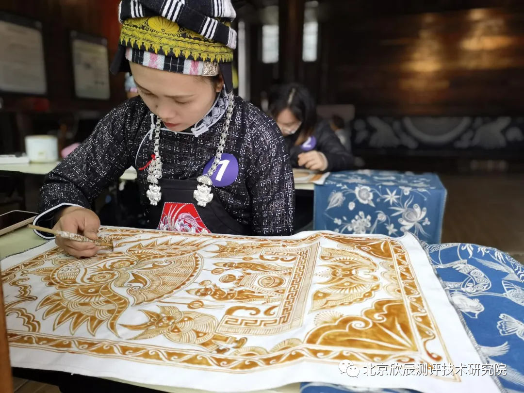 比赛现场,参赛选手用五颜六色的绣线在织布上“飞针引线”,将刺绣、蜡染等民族手工技艺的色彩搭配、构图审美、针线绣法等展现得淋漓尽致。