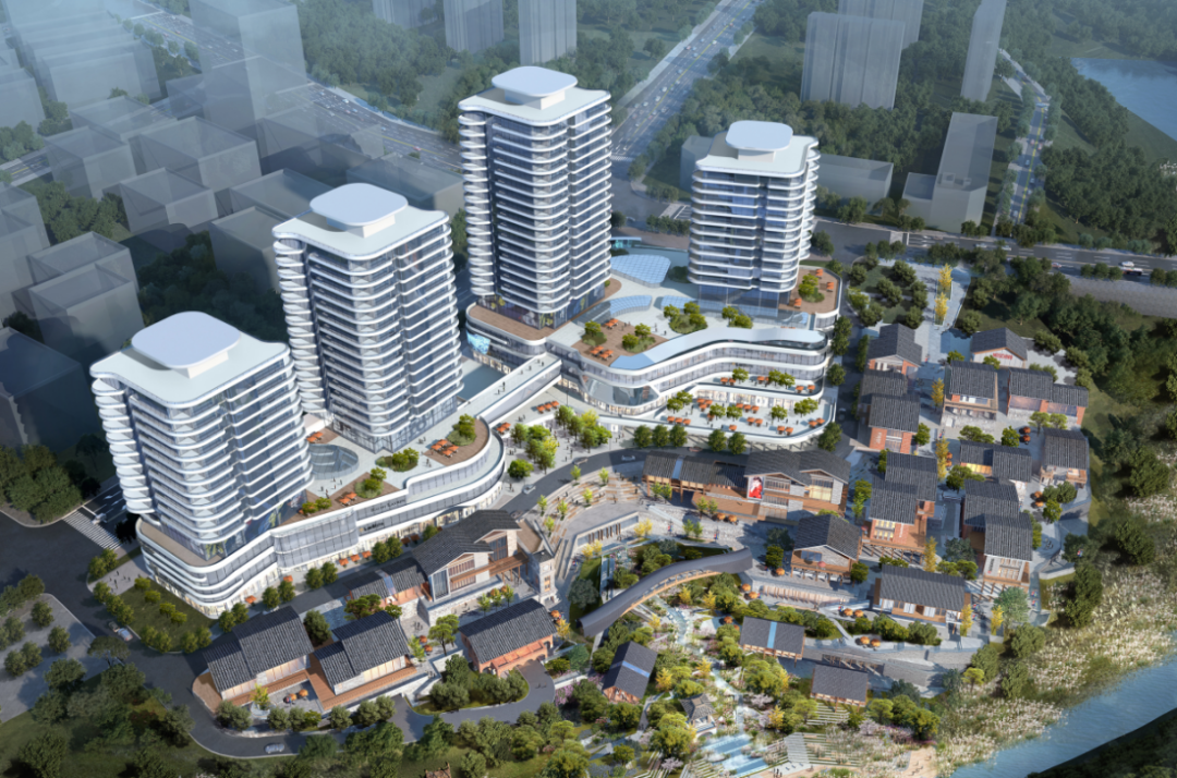 项目用地面积5.7万平方米,总建筑面积约21.43万平方米,于2021年开始建设,计划于2024年底竣工。项目商业约6.5万㎡:由购物中心(约4.4万㎡)和街区商业(约2.1万㎡,共计16栋)组成;写字楼(约7.3万㎡,共计4栋)和车库(约7.2万㎡,共计1672个)。