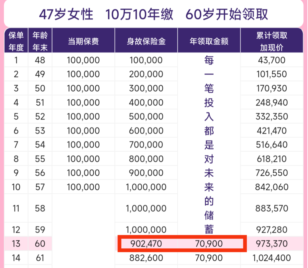 如果你超过47岁,万一领取了第一年,来不及领取第二年就身故,拿不回总保费。
