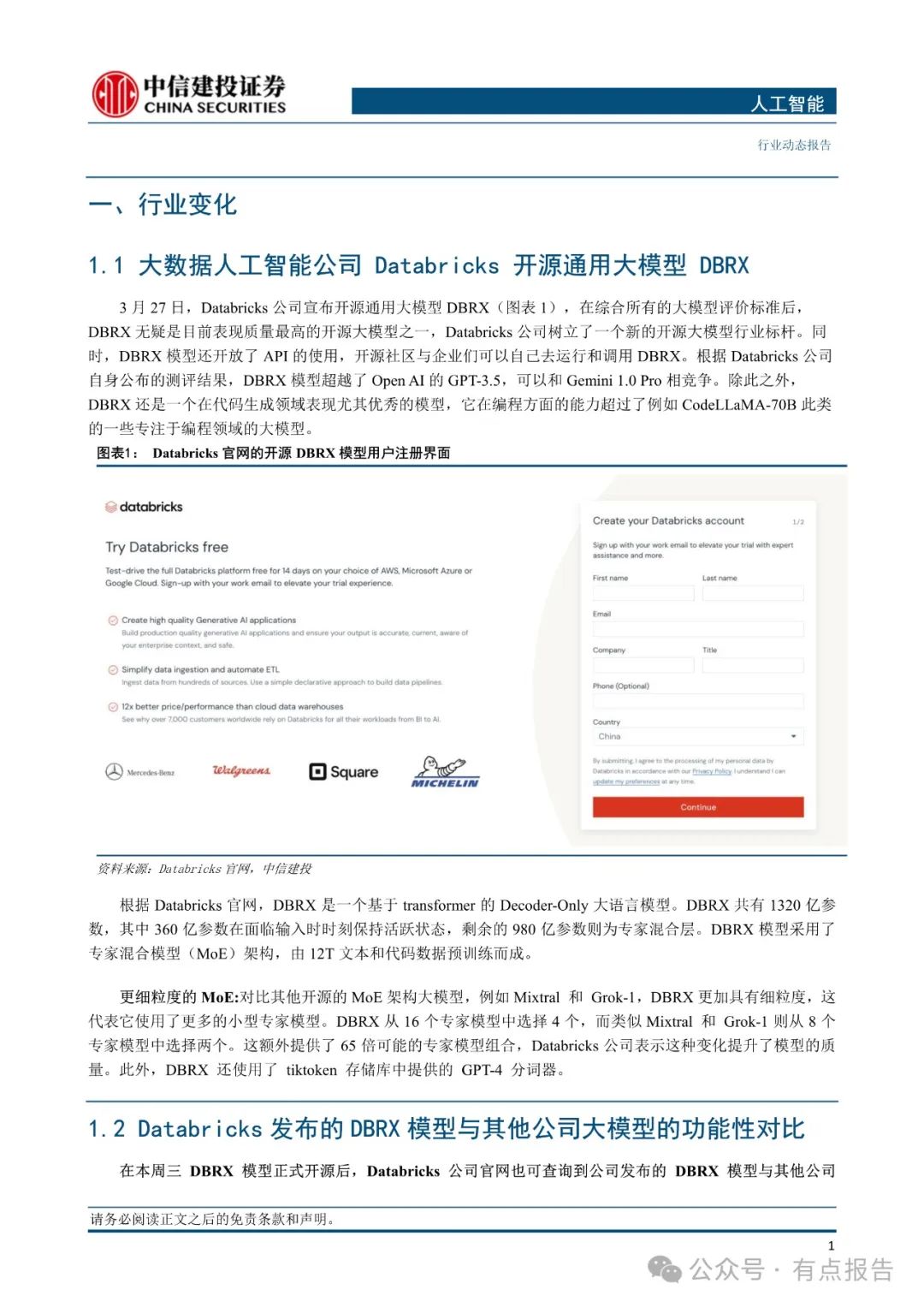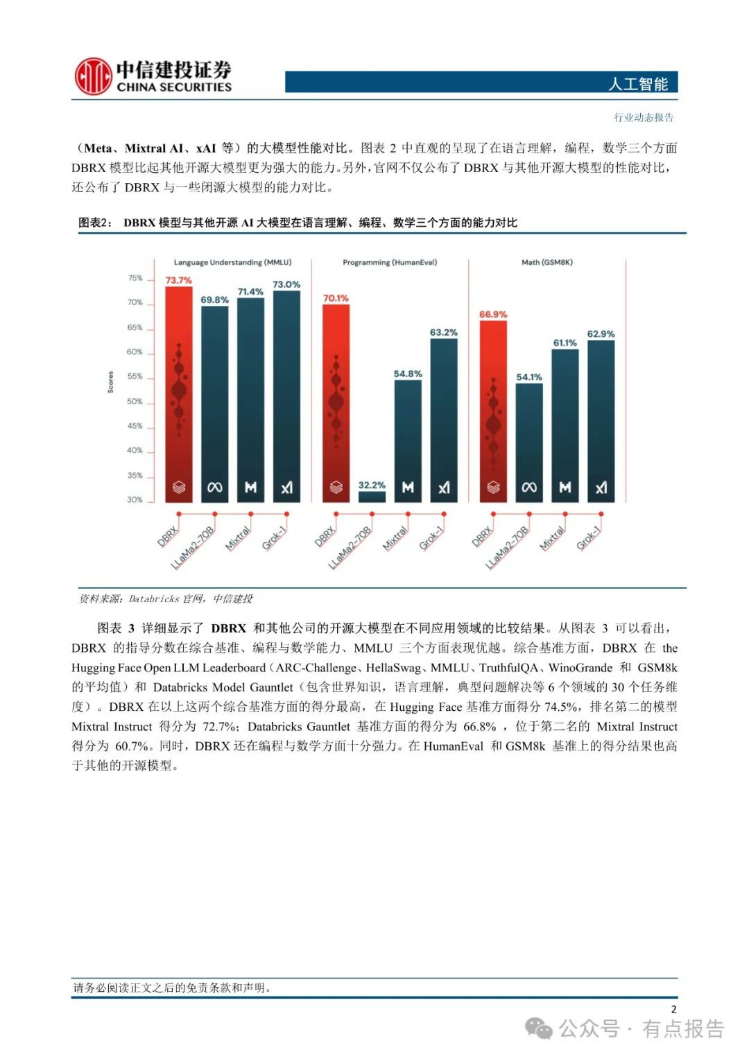 大数据 AI 公司 Databricks 于 3 月 27 日开源了一款拥有1320 亿参数、使用 MoE(专家混合模型)架构的 DecoderOnly 大模型 DBRX。DBRX 模型正式开源后,Databricks 官网发布了 DBRX 模型与其他大模型的功能对比与评价。