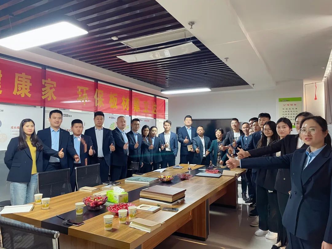交流会开始前,高林精板全国运营总经理与总裁张涛受邀参观了鼎立达集团,并与时董事长交流品牌发展史。