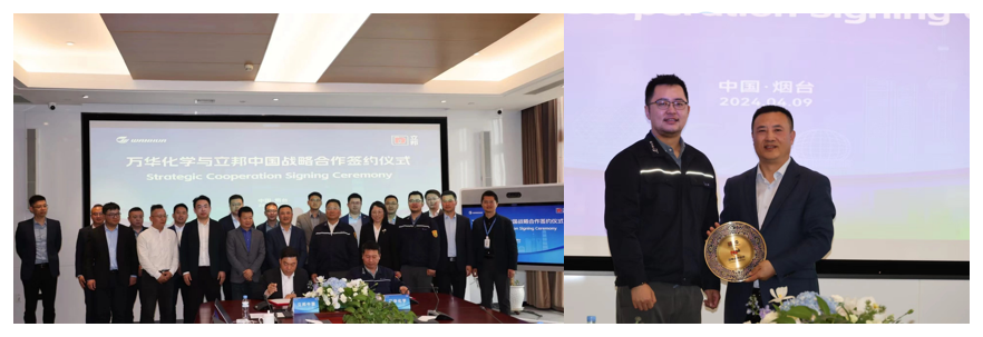 4月9日,万华化学与立邦中国签订战略合作协议,同时,立邦中国为万华化学颁发优秀供应商奖,万华化学成为立邦中国首个荣获此奖项的原材料供应商。