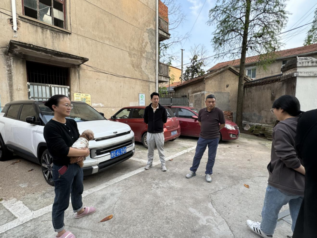 4月10日,资产运营部工作人员前往警民巷查看装修改造进度,实地对接附近居民,沟通停车及出入口改造事宜。
