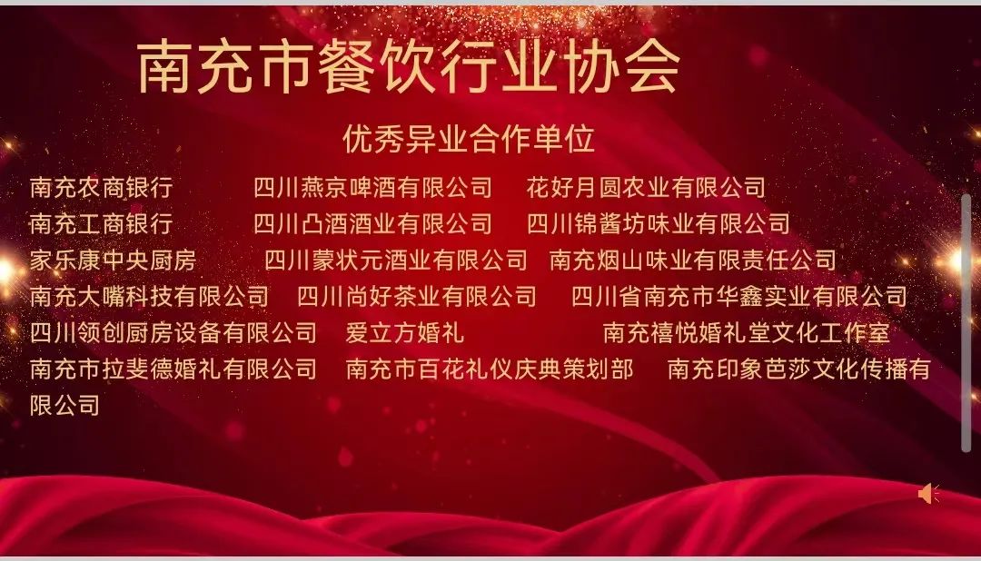 活动由南充餐饮行业协会、顺庆餐饮协会、高坪区餐饮烹饪协会、嘉陵餐饮娱乐协会共同发起举办,南充餐饮行业协会会长于烈阳先生旗下大蓉和酒楼承办!凸酒、燕京啤酒、花好月圆、新希望、华鑫实业、市工商银行、市农商行等企业赞助!