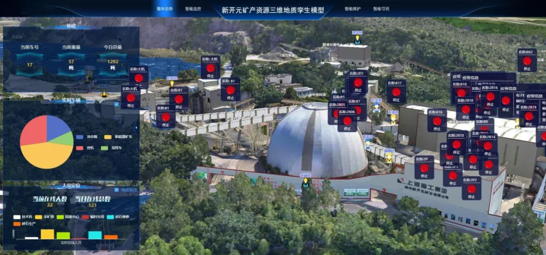 自主研发的一体化业务服务平台,实现了矿区地质地形图、爆破资料、钻探资料、岩石磨蚀性等基础数据的有机整合和展示;通过矿山大数据与自动化装备的深度融合,建立了“人-机-环”的虚实融合感知系统,实现了矿山安全生产状态的全面精准感知、风险分析与交互式处理,极大提升了生产效率,保障了安全生产。