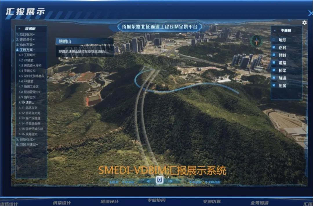其中,自主研发的路桥隧数字化设计模块,实现了全过程正向设计、多专业协同、数字仿真、设计成果表达等重点功能;工程设计VDBIM展示系统,满足投标述标、设计协同、施工交底、基础运维等多场景需求,有效助力工程业务拓展。