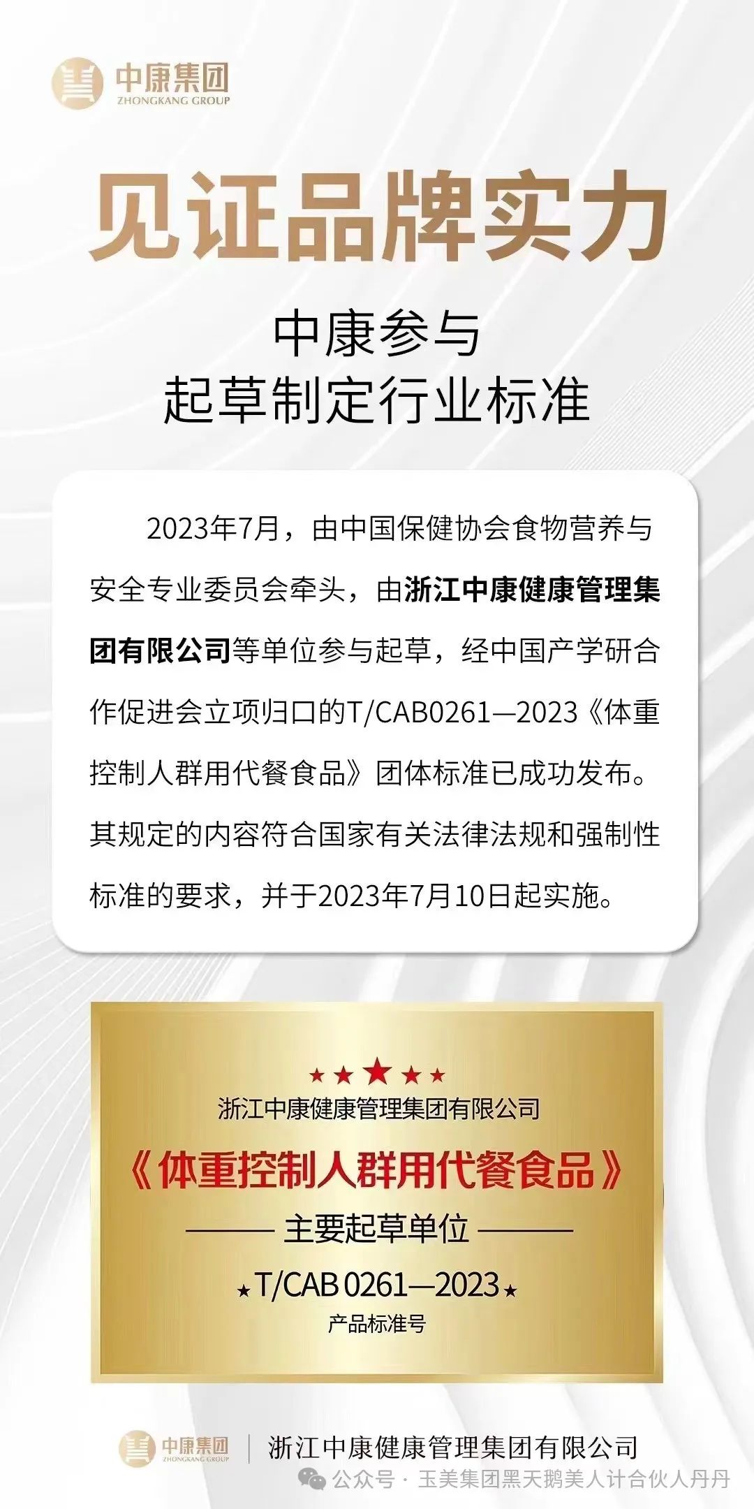 ?中康集团参与起草制定行业标准#《体重控制人群用代餐食品》,为消费者购买代餐食品提供更合规、更安全、更有效的标准!为行业的健康发展贡献力量!