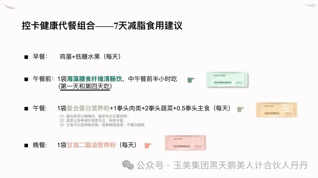 晚餐:只喝我们的甘油二脂营养粉(简单来说就是代餐)这里面有17种营养成分 还可以帮助你晚上睡觉的时候都在燃脂