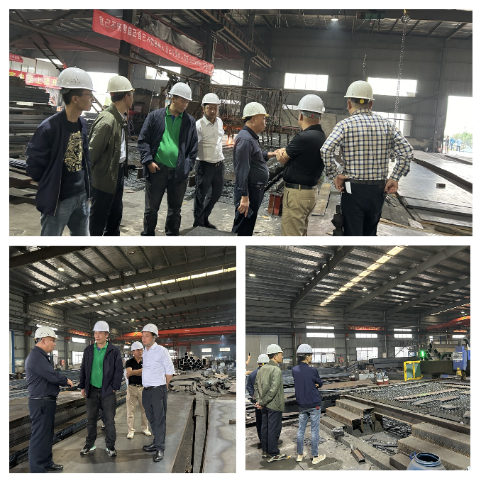 在该司游总的陪同下走进车间进行实地参观学习。据悉,江西先峰钢结构有限公司成立于2017年,是一家专业从事工业与民用钢结构建筑设计、加工、制造、安装、施工、销售为一体的民营企业。公司位于国家级经济技术开发区-赣州市黄金经济开发区,厂房占地面积约一万平方米。2022年新增两条生产线(江西里峰钢结构有限公司)位于国家级经济技术开发区-赣州市综合保税区,厂房占地面积约一万五平方米,新老厂区年加工产量约为四万吨。