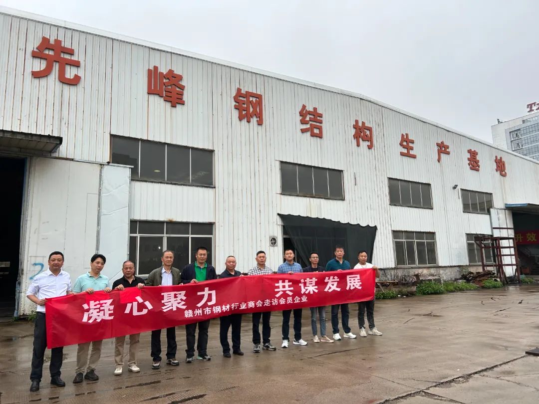 好雨知时节,当春乃发生。为进一步加强会员企业之间交流,提升商会建设水平,搭建会员企业互相学习合作平台,4月12日下午,赣州市钢材行业商会轮值会长黄继赣率常务副会长何连生、副会长向明、袁泰龙、黎勉、理事赵云、黄金根、会员陈忠恕、黄继伟、罗文健、王忠瑜及秘书处前往副会长游小平企业江西先峰钢结构有限公司走访交流,游总对我们一行的到来表示热烈欢迎,并向大家介绍了公司发展历程、近期的发展情况和规划。
