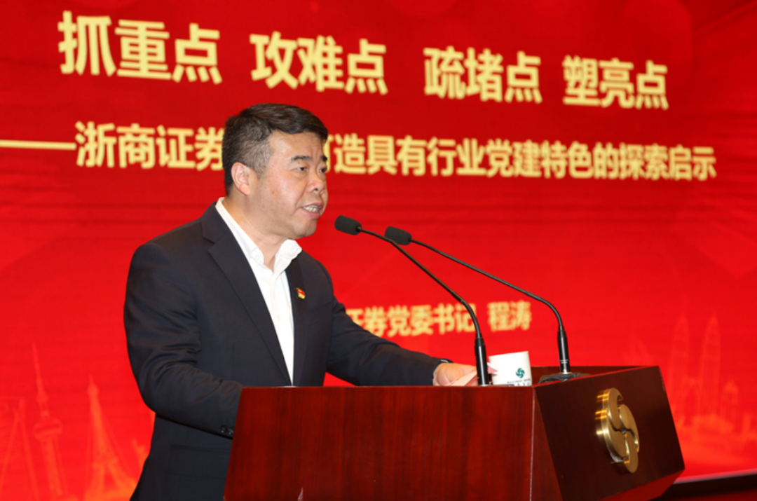 浙商证券是浙江省首家国有控股上市券商,隶属于浙江省交通投资集团。目前,控股浙商期货、浙商资本、浙商资管、浙商投资四家子公司,130余家分支机构分布全国22个省份,正在向全国中大型券商努力奋进。我的发言主题是:抓重点攻难点疏堵点塑亮点——浙商证券党委打造具有行业党建特色的探索启示。分三个方面,谈谈我的认识和体会。