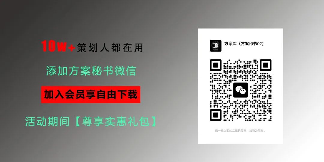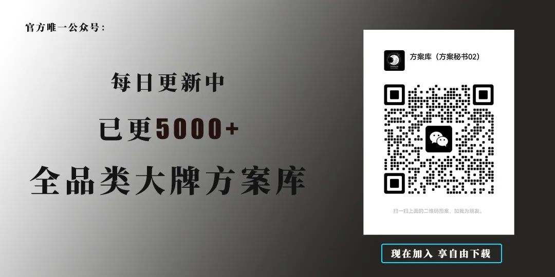 e:方案库覆盖:品牌定位 、品牌策略、品牌推广、公关传播、社会化传播、新媒体传播、造势营销、IP营销、内容营销、娱乐营销、事件营销、数据营销、公益营销、跨界营销、电商营销、汽车营销、化妆品营销、快消品营销、互动营销、KOL代言、家电、家居、旅游、汽车、酒店、电商、互联网、金融、保险、服装、美妆、快消品、医疗、餐饮等方案,涵盖各行业的品牌案、公关案、定位案、传播案、社会化传播、新媒体传播、推广案、营销案、腾讯、新浪、耐克、唯品会、天猫、阿迪达斯、京东、荣耀、OPPO、VIVO、肯德基、海尔、摩托罗拉、今日头条、西贝、波司登、立白、淘宝、蒙牛、优酷、小米等。