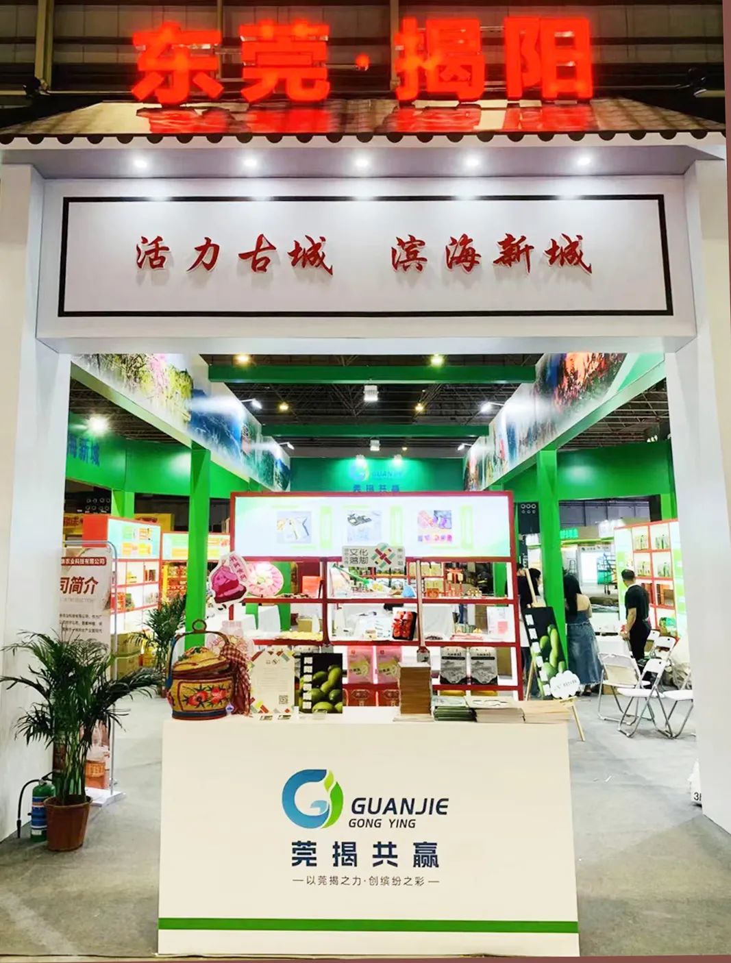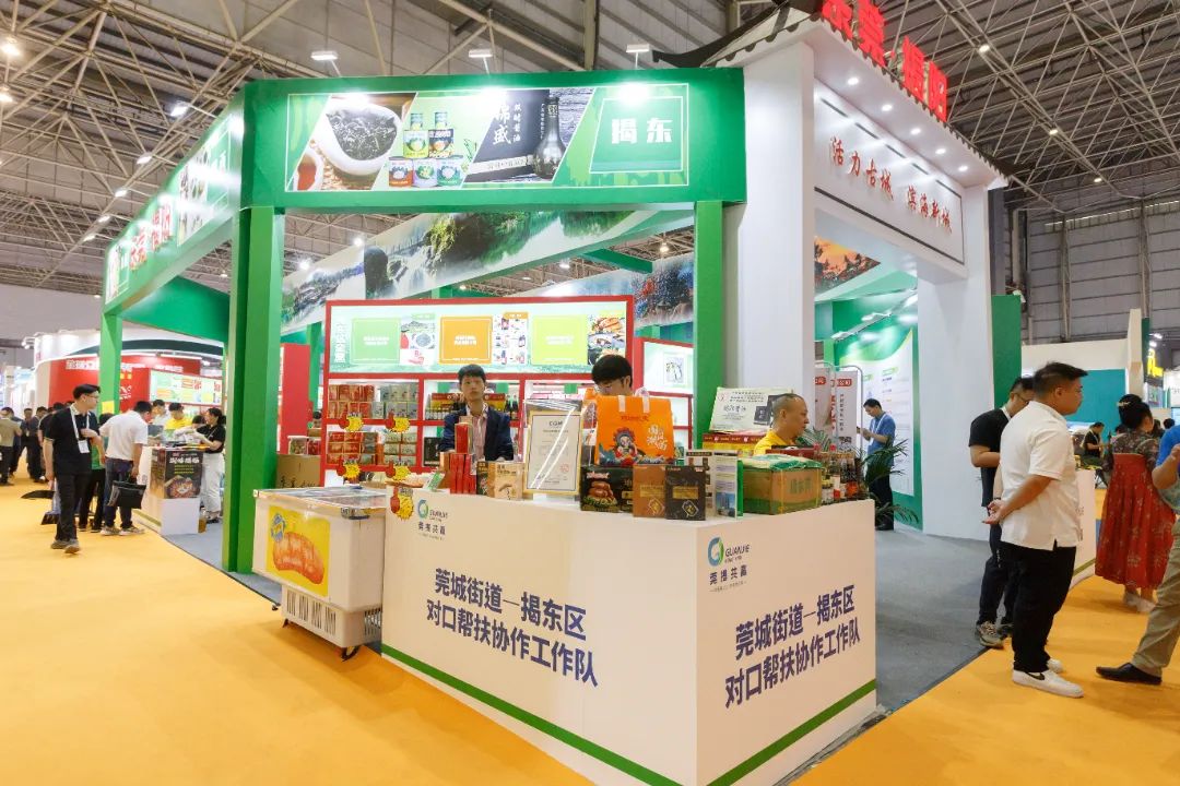 为推动揭阳优质农产品走进大湾区,促进莞揭贸易对接合作,此次东莞市—揭阳市对口帮扶协作指挥部打造莞揭特装馆,组织5个驻县(市、区)工作队及20个驻镇帮扶工作队共发动约30家揭阳企业参展。