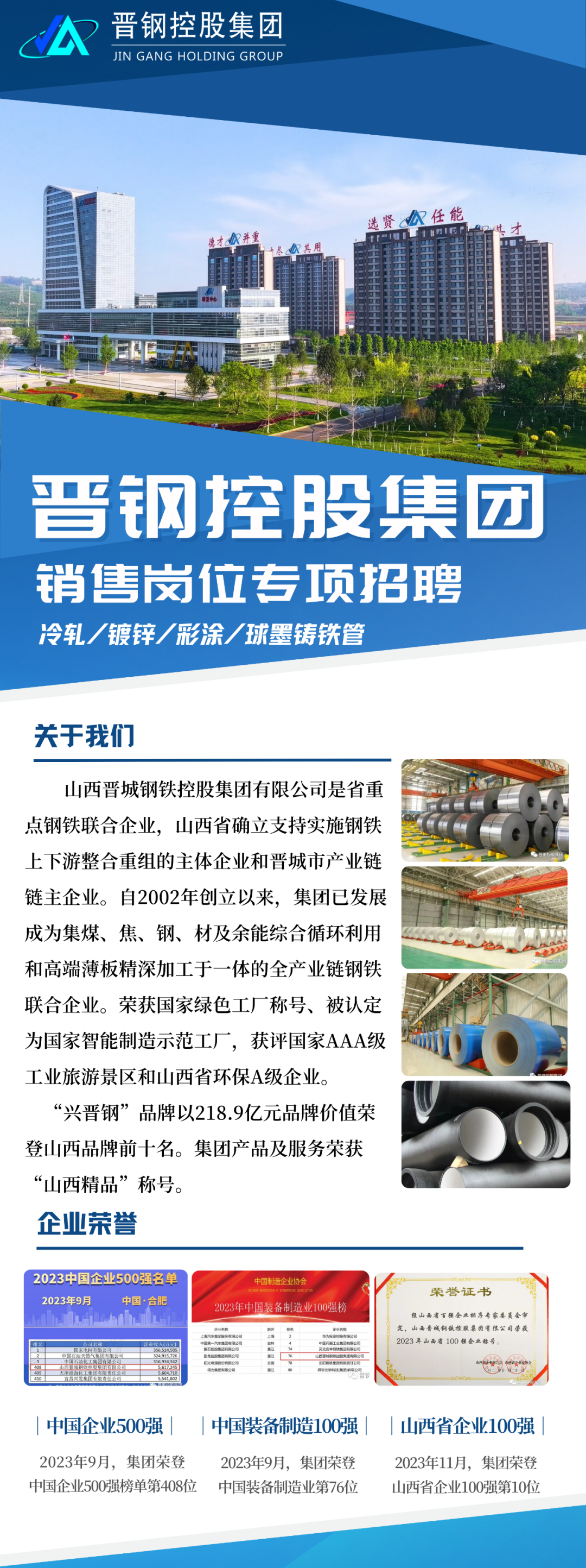 【招贤纳士】晋钢控股集团产品销售岗位专项招聘