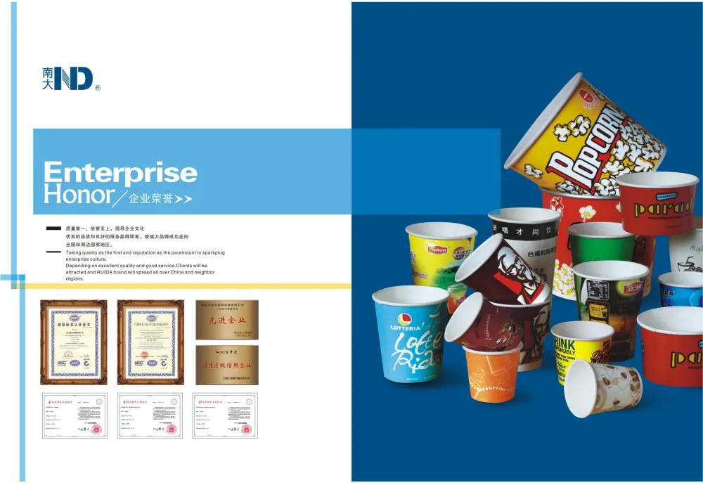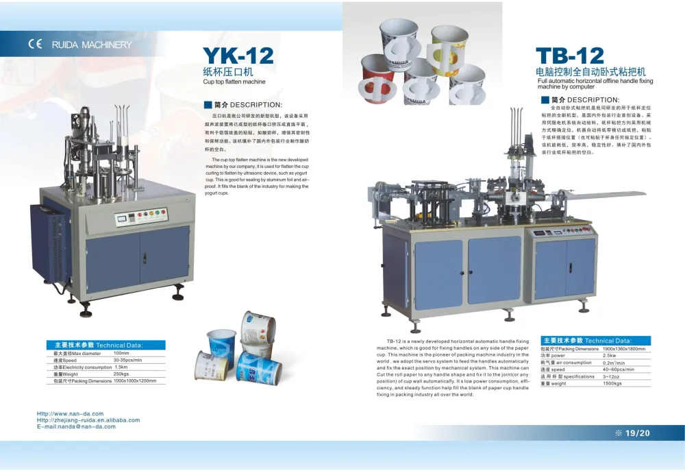 公司广泛引进和吸收国内外先进纸杯机的生产技术和经验,加以对比、分析、消化,研制成功单双涂膜纸杯机、 纸碗机、贴碗机、碟盒机、纸杯粘把机、印刷机、模切机,我们的纸杯机功能齐备、性能稳定,造型美观,通过模具互换可生产2.5盎司--200盎司(60毫升--6000毫升)纸杯、 纸碗、肯德基家庭装大碗,达到国内同类产品的领先水平。我们可以按照客户的要求定制生产各种规格的纸杯机及纸杯模具。
