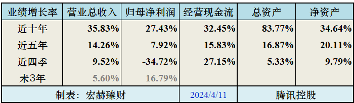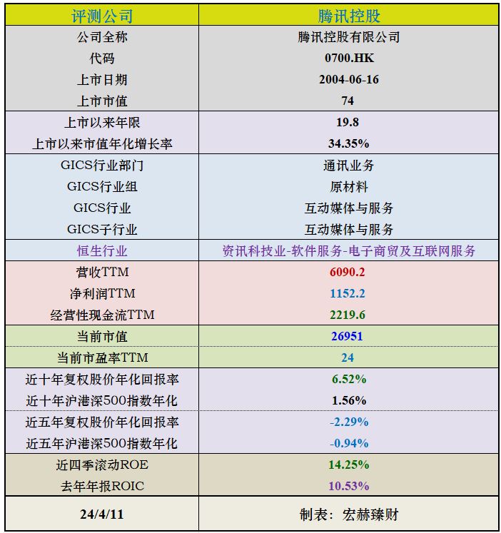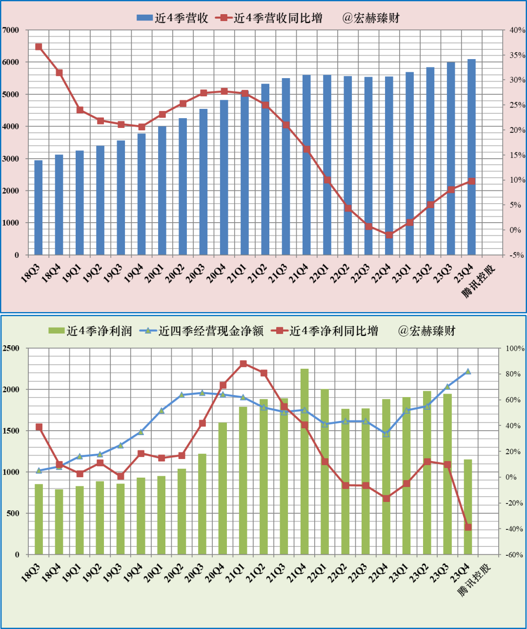 腾讯控股 近四季度营收为6090亿,归母净利润1152亿,当前市值2.70万亿,市盈率24倍。非国际准则归母净利润1577亿,市盈率17倍。