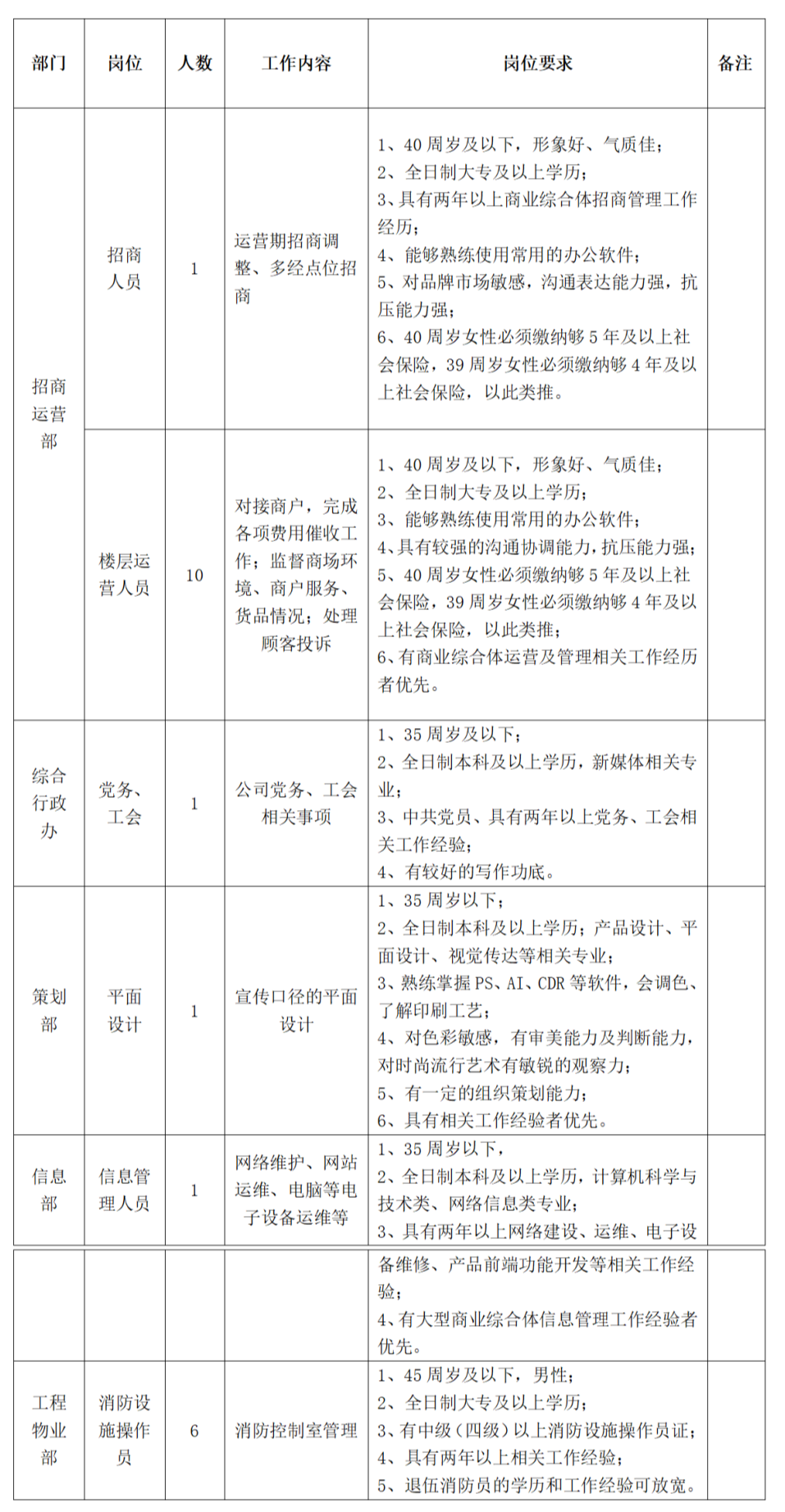 附表1:招聘岗位及要求