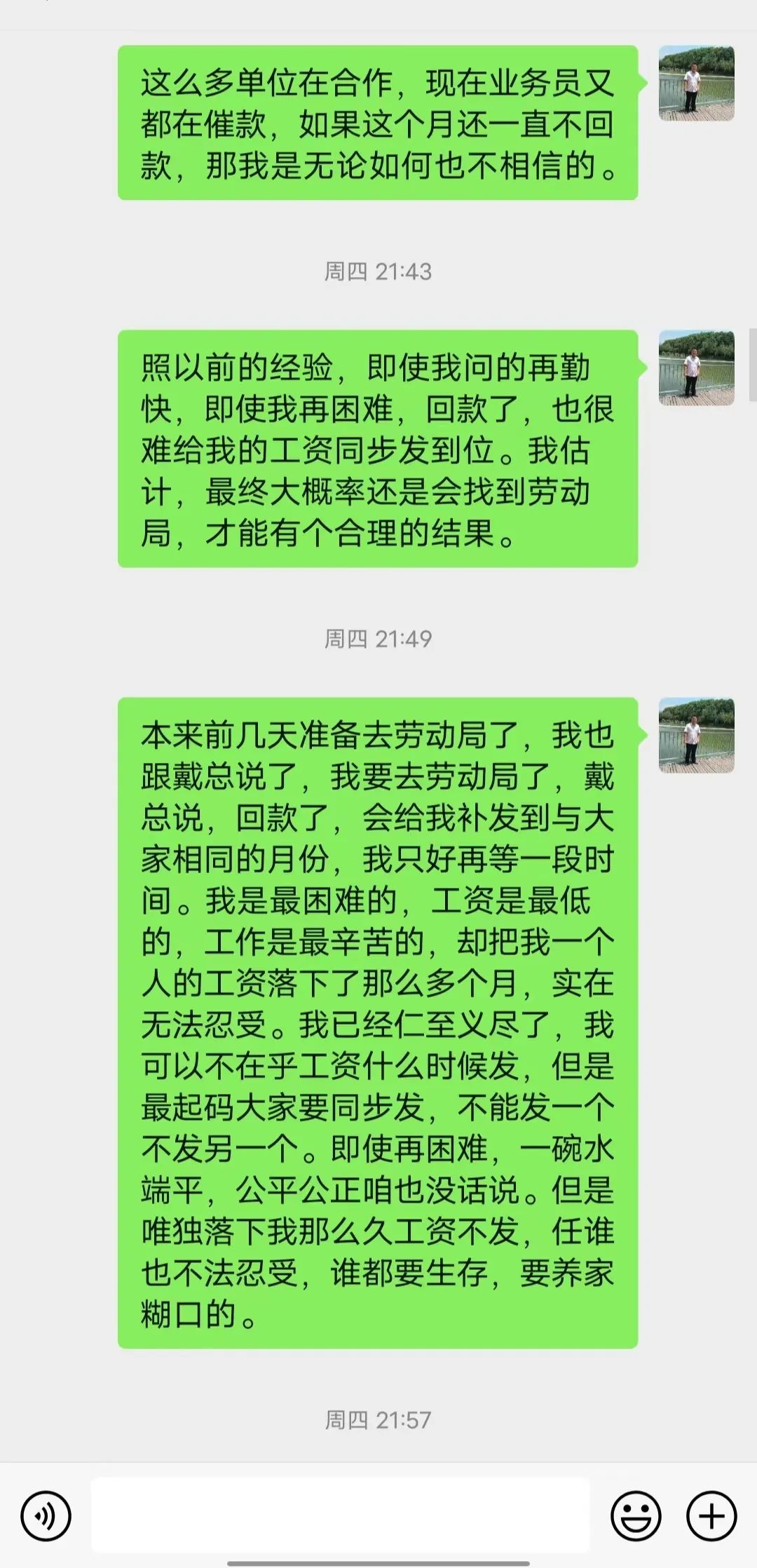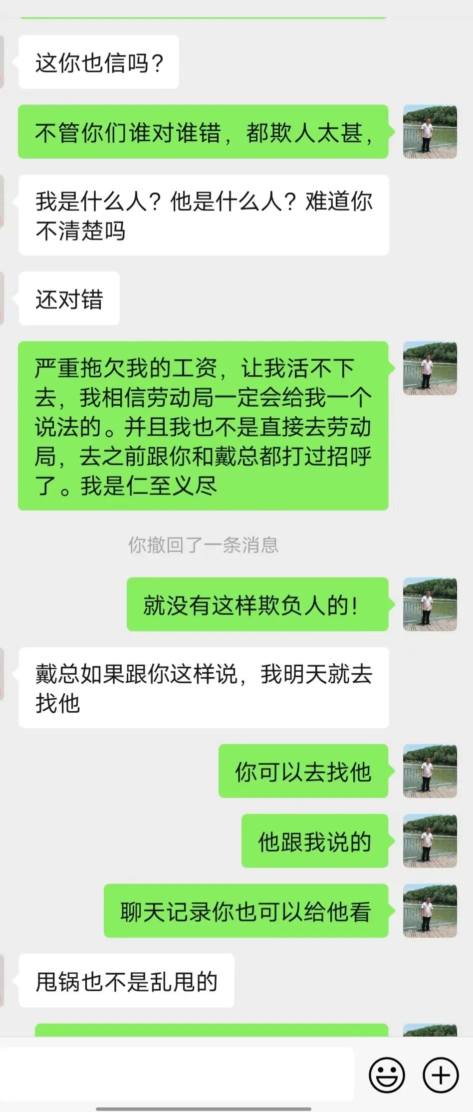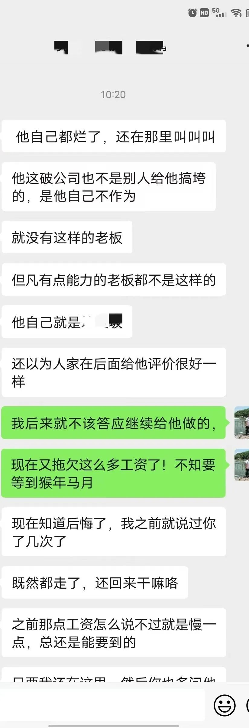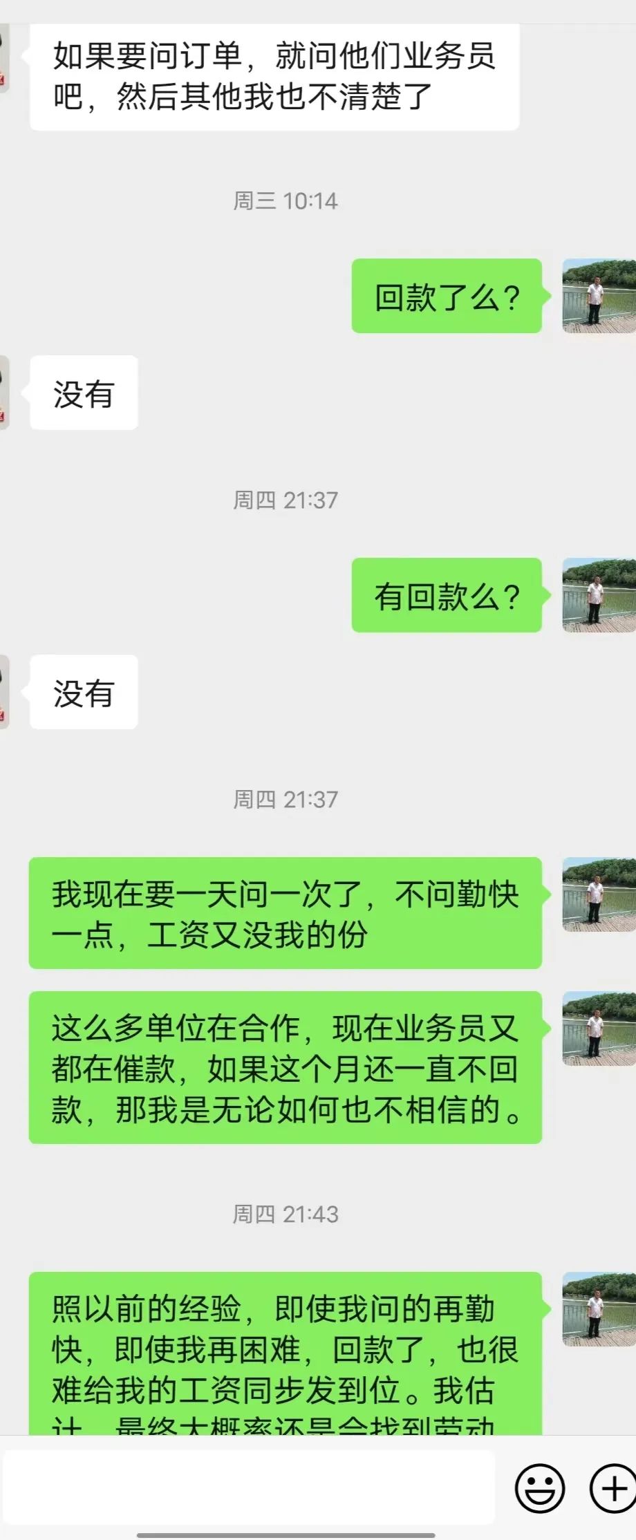 附本人与公司同事的部分聊天记录如下图: