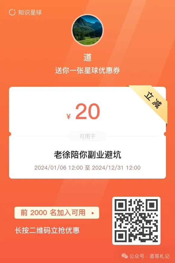 扫下面优惠券,直接加入星球,可节省 20元,但不送书。