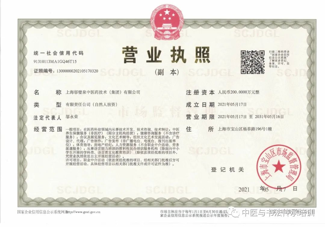 上海邬璧泉中医药技术(集团)有限公司是一家专注24节气药膳大赛,促进人们在商场餐饮店消费,促进中医药产业地产建设的集团公司,推动中医传承和发扬光大文化“体医养康护”比赛暨技能培训的“一静一动”。五大目标方向:一让城市更新下购物中心商场提升人气,二让白领午餐、助老餐有更多消费者,三让企事业单位采购乡村振兴农业产品,四带着“一老一小”,走近中医博物馆,抄写诸如邬璧泉老中医书法,五通过人工智能技术助力青少年为老服务以及陪伴。