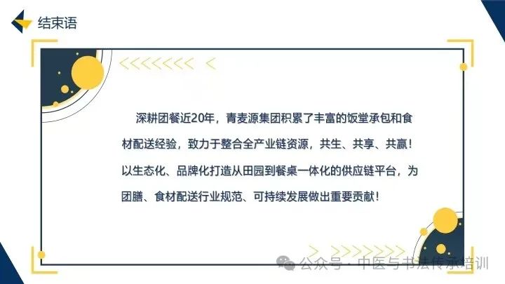 特色之三~占领市场,为新质生产力作贡献!例如新开5家分公司,业务范围向北首次跨过长江,发展至河南、山东、陕西,形势喜人!2024年,公司继续执行既定规划,在现有供应链及团膳管理、服务优势基础上,依托管理变革以及外部合伙人等机制创新,稳步推进全国各地分公司的建设运营,为青麦源集团五年100亿目标的达成努力奋斗!