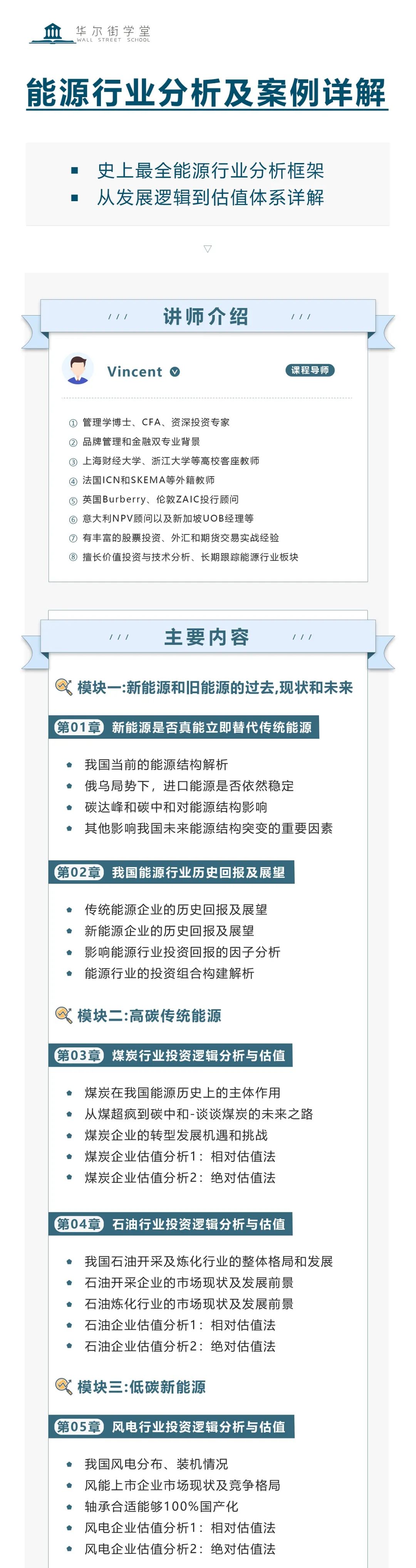 那么未来如何投资能源行业,如何在这条几乎公认的黄金赛道上真正有所收获?站在眼下的时点,我们邀请到了资深行业专家推出本期<能源行业分析及案例详解>专题课,全面系统的对新旧能源行业及投资机会进行深度解析。