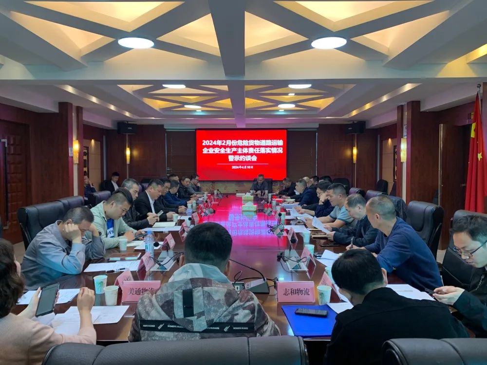 4月10日下午,我局召开2024年2月危货企业安全生产主体责任落实情况警示约谈会。市交通运输综合行政执法支队、市道路运输服务中心、局机关相关科室主要负责人,平江县、岳阳县、云溪区交通运输局负责人、运输股长及13家货运企业负责人参加。