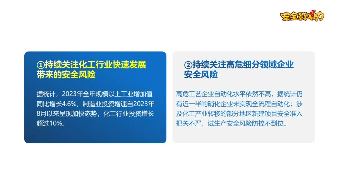 (五)积极研究新风险监管措施。针对环保设施、光伏发电、锂电池、智能装备、工业控制系统设计缺陷等带来的新风险新问题,深入开展调研,细致排查安全风险底数,及时制修订相关安全标准,督促企业加强对新风险的辨识管控,提升相关设备设施的本质安全水平,完善安全操作规程,强化员工安全教育培训,加强应急处置能力,提高新风险的防范和应对能力。