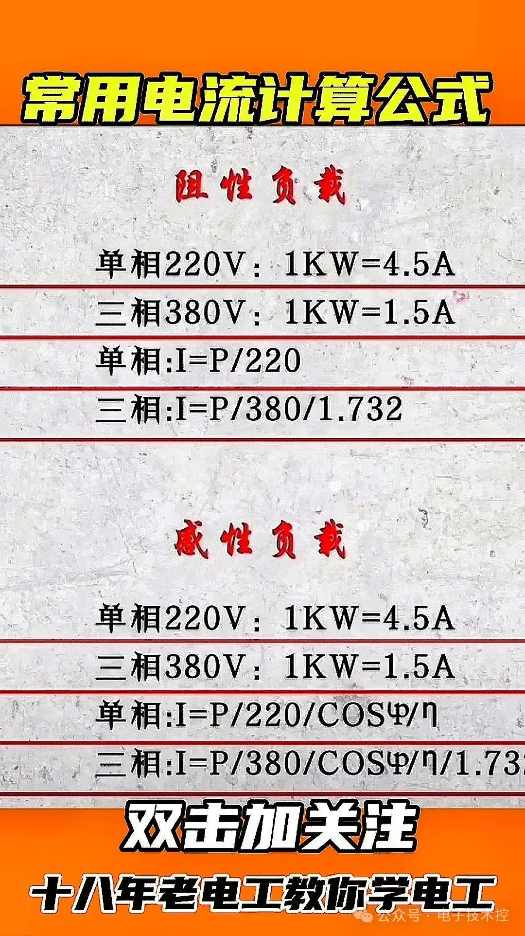 单相电机电流计算公式: I=U⋅cosϕP 其中,P 是电机的功率,U 是额定电压,cosϕ 是功率因数。 三相电机电流计算公式: I=3⋅U⋅cosϕP 其中,P 是电机的功率,U 是额定电压,cosϕ 是功率因数。
