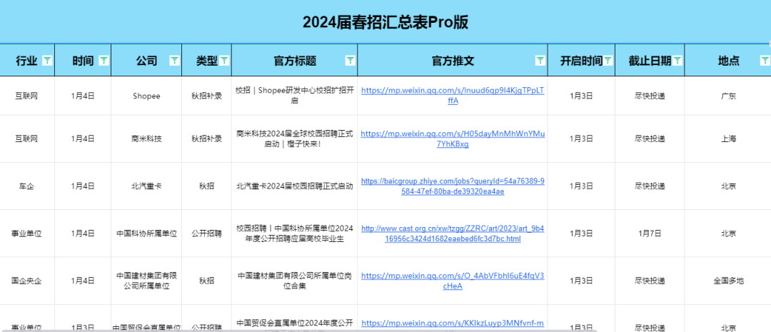 持续更新开放春招的企业
