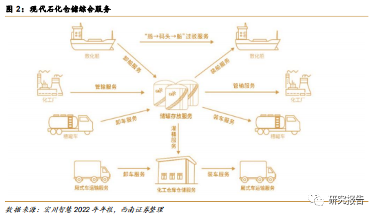 石化产业和仓储产业实现资源整合,是未来石化仓储的发展趋势,其主要特征之一就是 以港口为核心的运输系统的整合并依托物流园区的大型石油化工物流设施,从而推动石化园 区实现生产装置的集约化和装置之间的原料互供,以提高原料和能源的综合利用率。