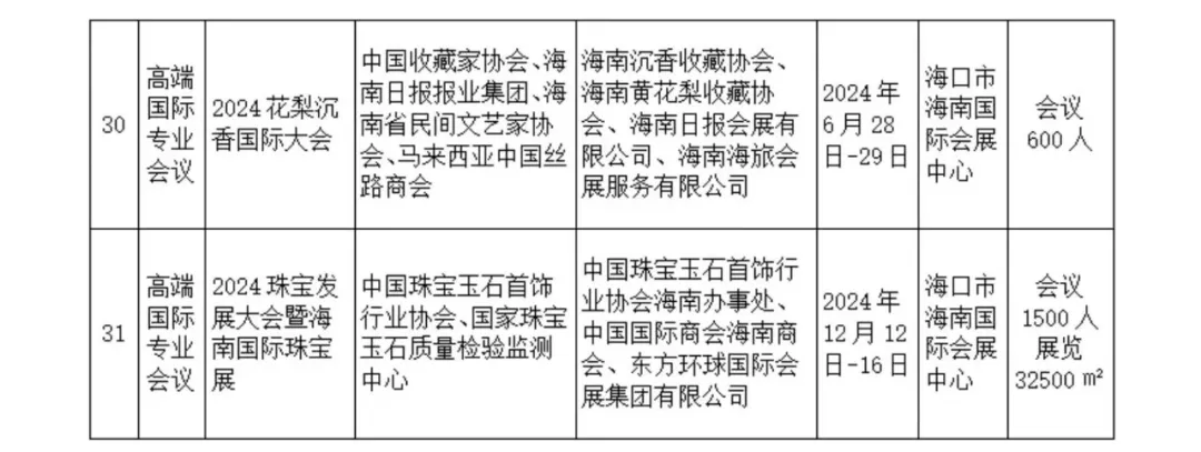 2024年,海南省级会展项目共计31个,涵盖专业展览与高端国际方向的专业会议等。