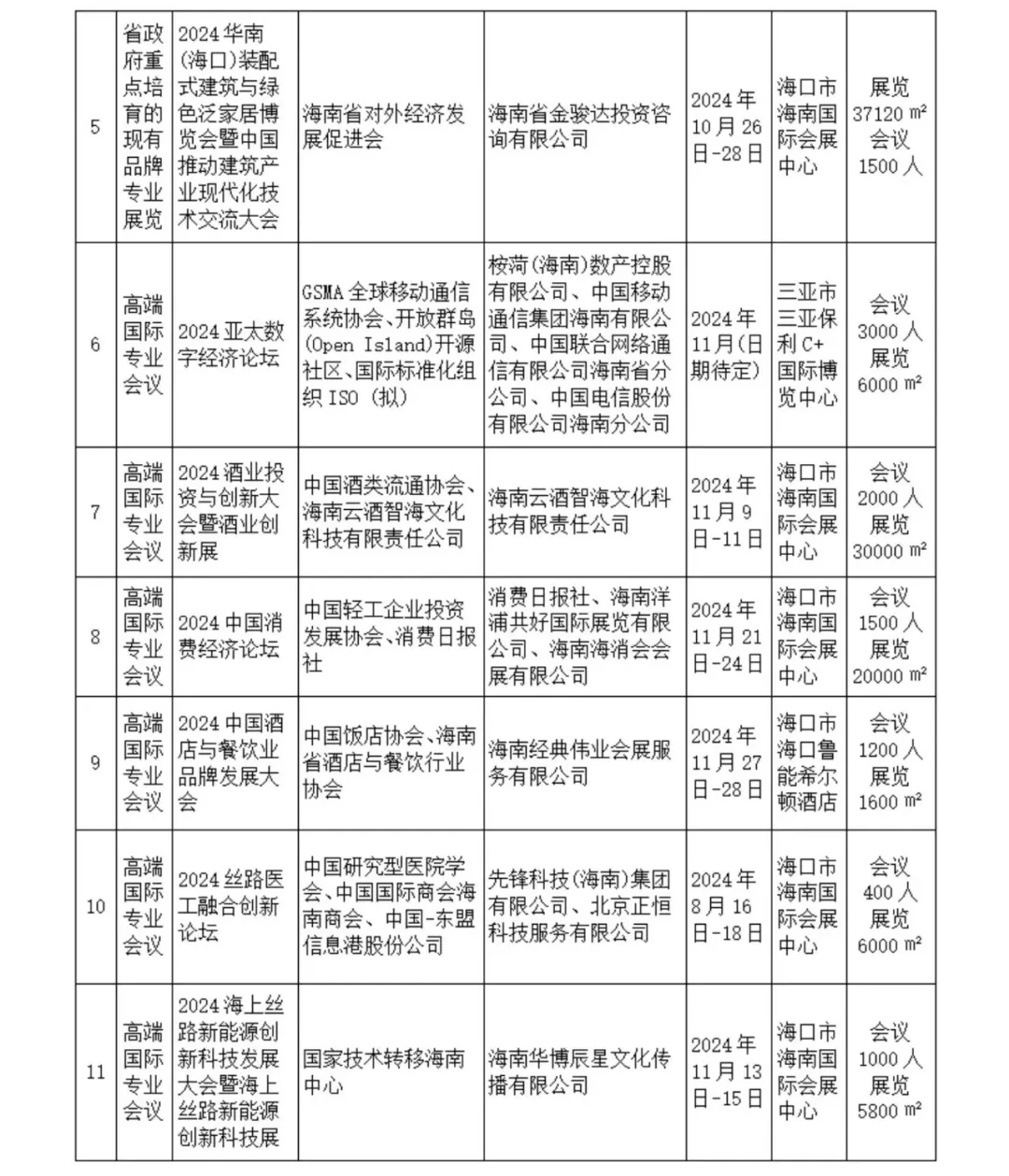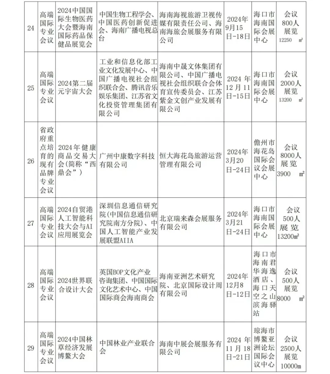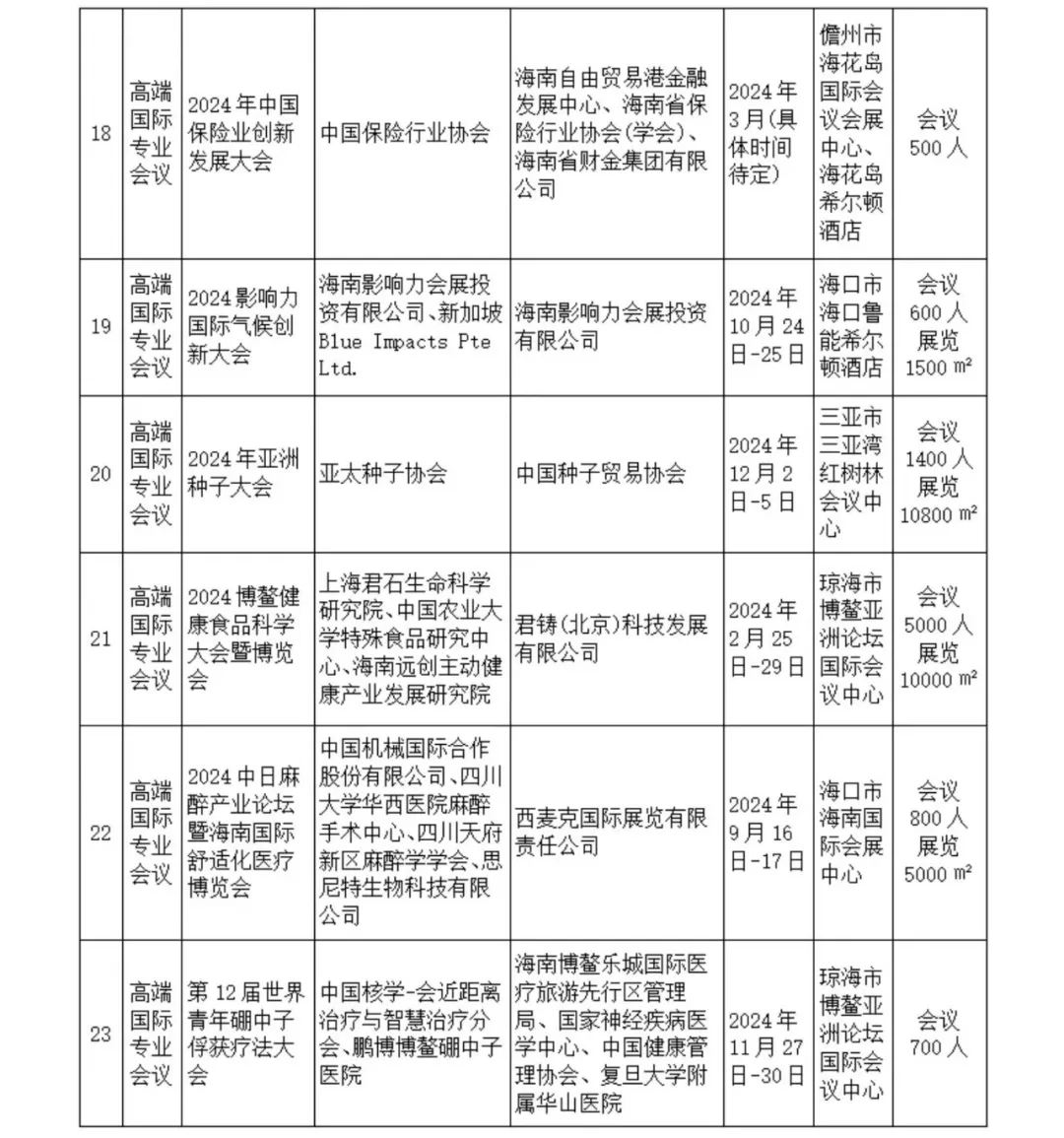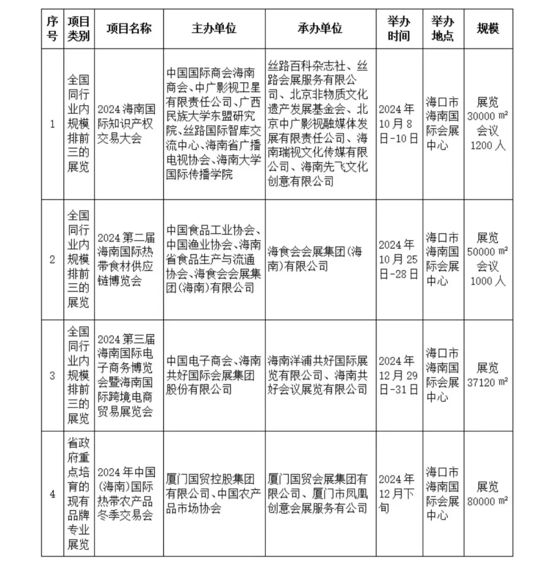 会展活动,带动会议旅游经济,海南省商务厅公布2024年度省级会展项目。