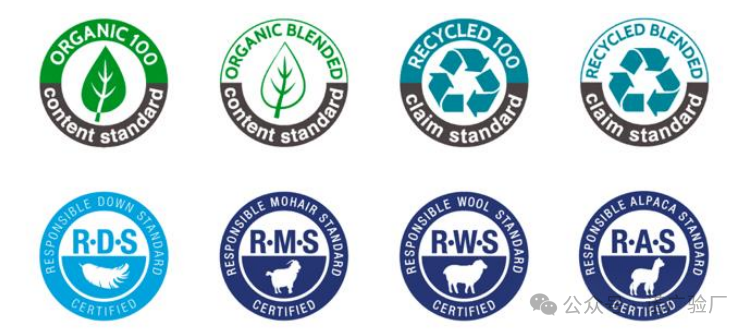 3、【RCS(Recycled Claim Standard)回收声明标准】:适用于含有至少5%回收纤维的纺织品(也适用于其他产品,如塑料、皮革、金属、玻璃制品等),旨在推动回收和再利用。
