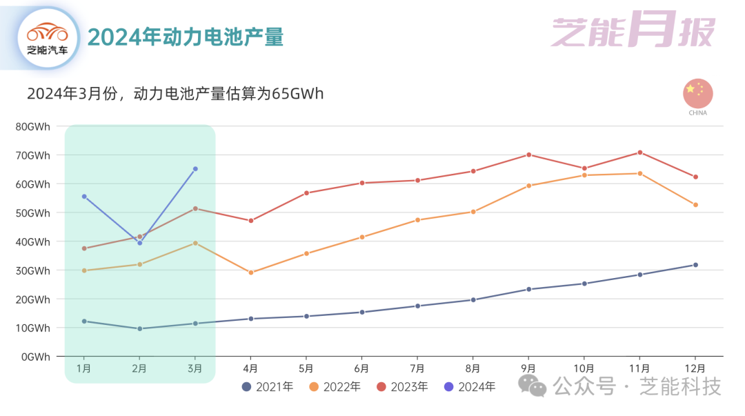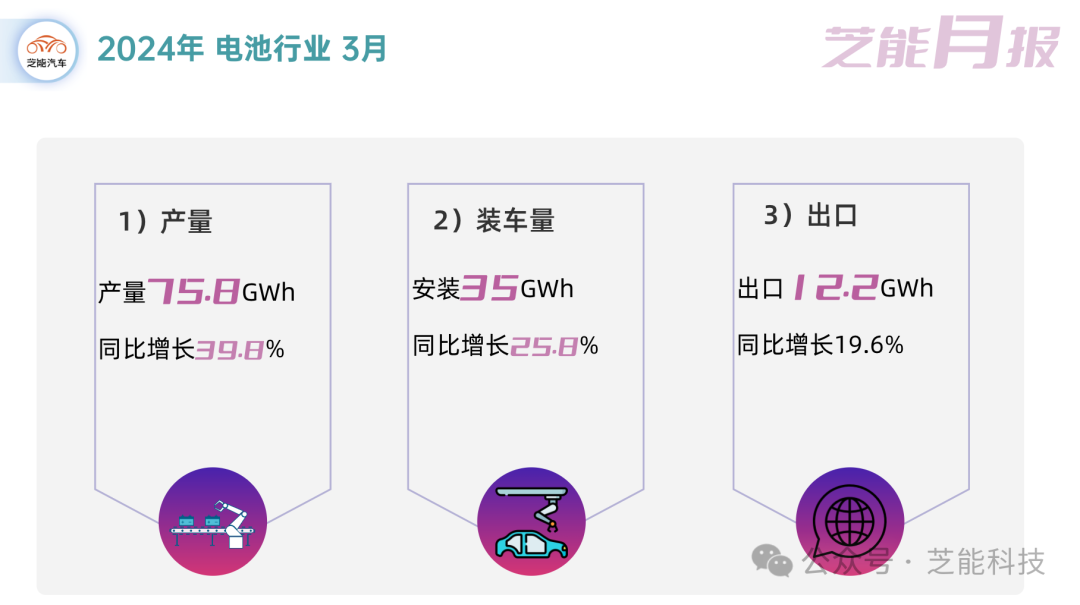 ◎ 3月份,中国动力电池和其他电池的总产量达到了75.8GWh,环比增长73.8%,同比增长39.8%。