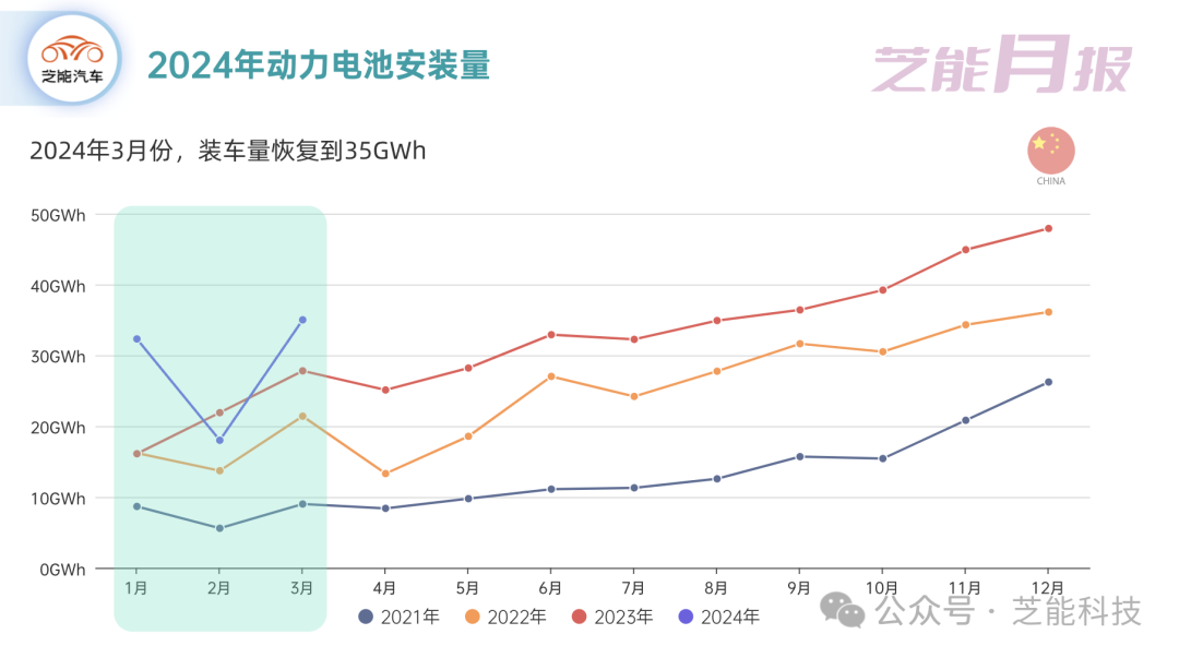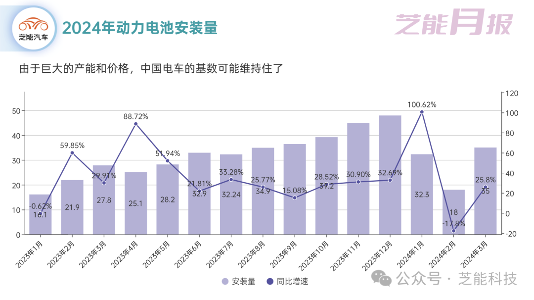 动力电池的装车量也保持了稳定增长的态势。