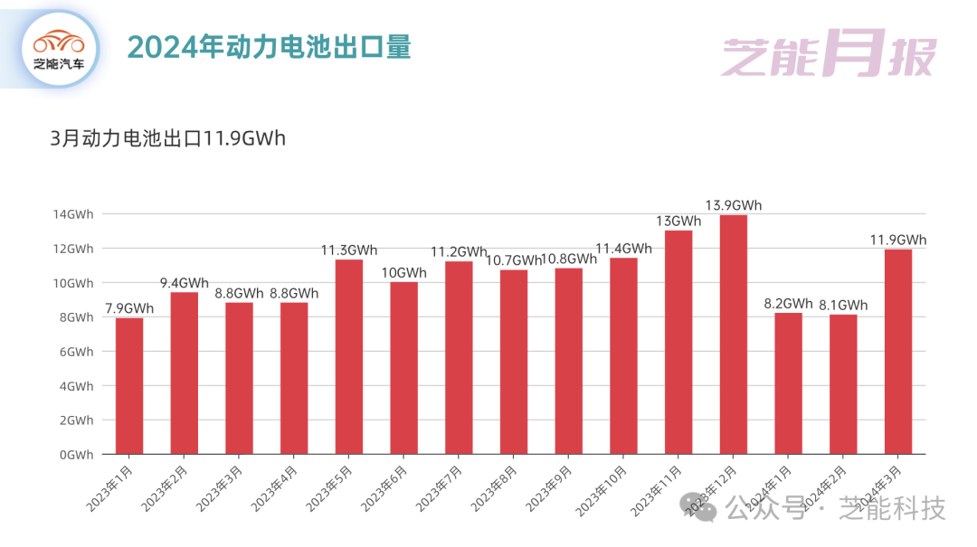 ● 动力电池出口11.9GWh;
